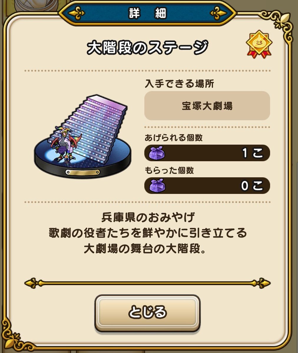 【ドラクエウォーク おみやげシーズン2】 #Nsaoiのドラクエウォークおみやげ旅 兵庫県 宝塚大劇場 道路から可能◎ #ドラクエウォーク6周年 #ドラクエウォーク #DQW pic.x.com/RISFZOWeON