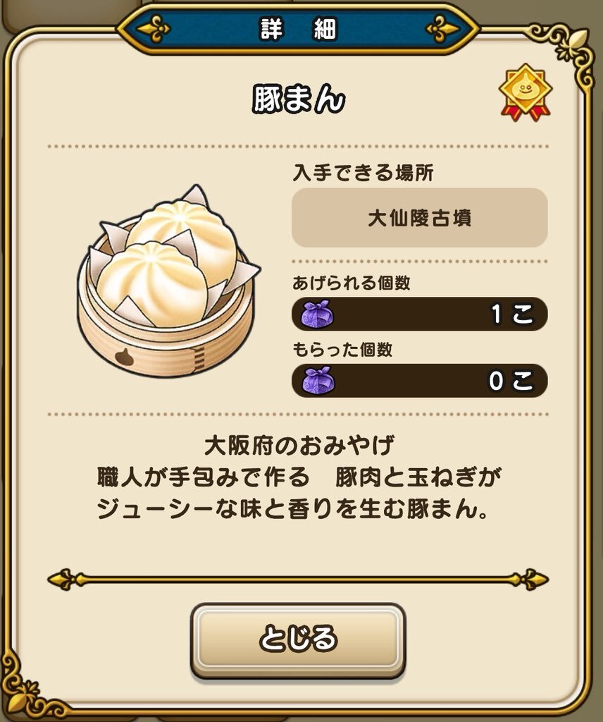 【ドラクエウォーク おみやげシーズン2】 #Nsaoiのドラクエウォークおみやげ旅 大阪府 大仙陵古墳 道路から可能◎ #ドラクエウォーク6周年 #ドラクエウォーク #DQW pic.x.com/13GLRTNewb