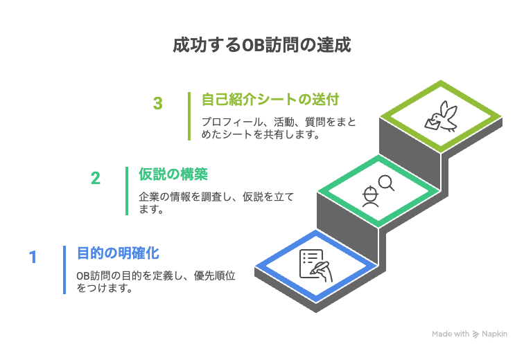 OB訪問を「質問して終わり」にしてないですか?それは非常に勿体無い。一流は「自分を売り込む」プレゼンの場と捉えている。訪問前に送る自己紹介資料ひとつで、社員の見る目は全く変わる。「この学生、デキるな」と思わせる準備が必要です。 #OB訪問 #27卒 #面接 pic.x.com/WLXAJU3E7z