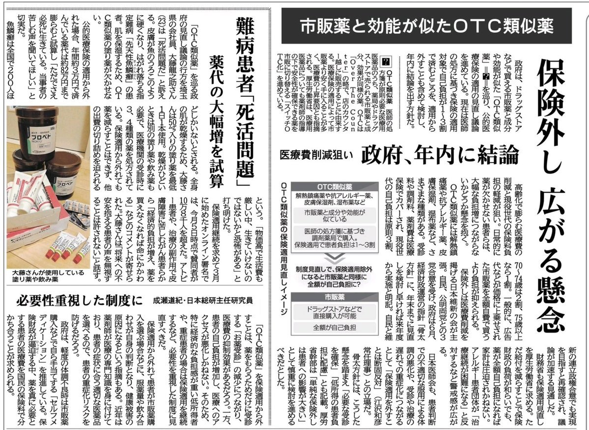 保険適用の見直しについて、子どもや慢性疾患の患者への配慮の方向で議論が進んでいます。当事者の意見をきき慎重に判断して頂きたいですね。 news.yahoo.co.jp/articles/e6d8e… #難病 #OTC類似薬