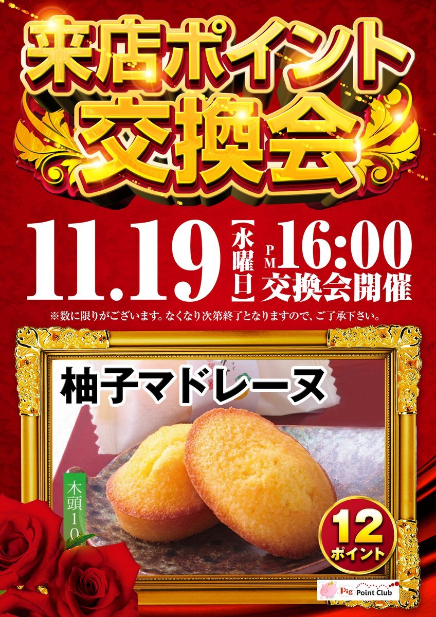 皆様おはようございます☀️ 11月19日【水】朝9時開店 #来店ポイント交換会 柚子マドレーヌ🥧 《最新台好評稼働中‼️》 #Pメイドインアビス奈落の連環蝕 #スマスロネオプラネット #e東京喰種 増台‼️ #Lバベル ‼️ 5スロに #Lヱヴァンゲリヲン 増台‼️ #ドルアーガの塔 ‼️ ご来店お待ちしております pic.x.com/jGuWmgTDRj