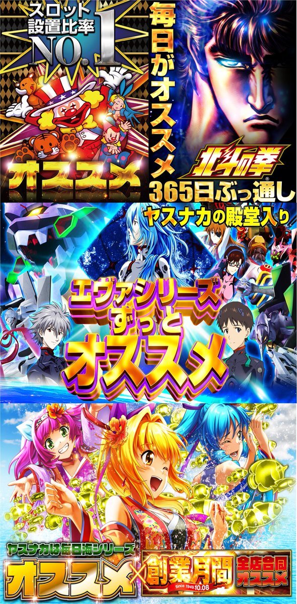 こんばんは🌙 やすだ仲宿店です😃 明日1⃣0⃣月2⃣9⃣日10時開店 水魚の交わり🐟 全てはお客様の為に・・・ #海物語シリーズ毎日オススメ🐋 🎉創業月間 CLIMAX WEEK🎉 全店合同オススメ #P北斗の拳暴凶星 #L東京喰種 ヤスナカのオススメ機種も要チェック👀 皆様のご来店お待ちしております🫡 pic.x.com/qQPm92oAHw
