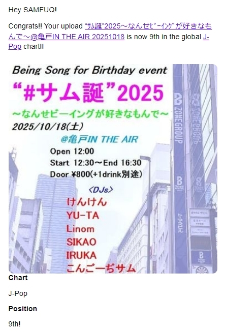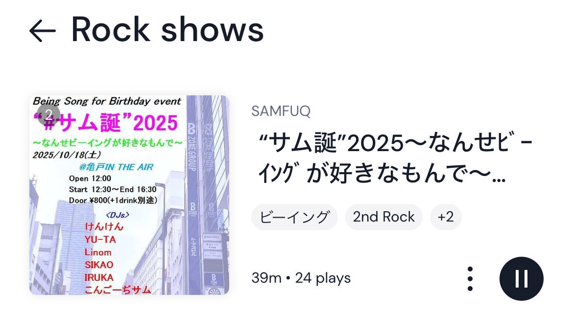 #サム誕 2025 DJ&来てくれたみなさん ありがとうございました🙌 また1歩アラ還に近づいてしまいました😂 そんなワテクシのお品書きはこちら👇 みんなにそれぞれのビーイング期がありつつ 有名どころも多く流れ且つカブりも少なかったおかげで好き勝手しました😆 ユルサレルならまた来年⁉️👋 x.com/kenken1972/sta…