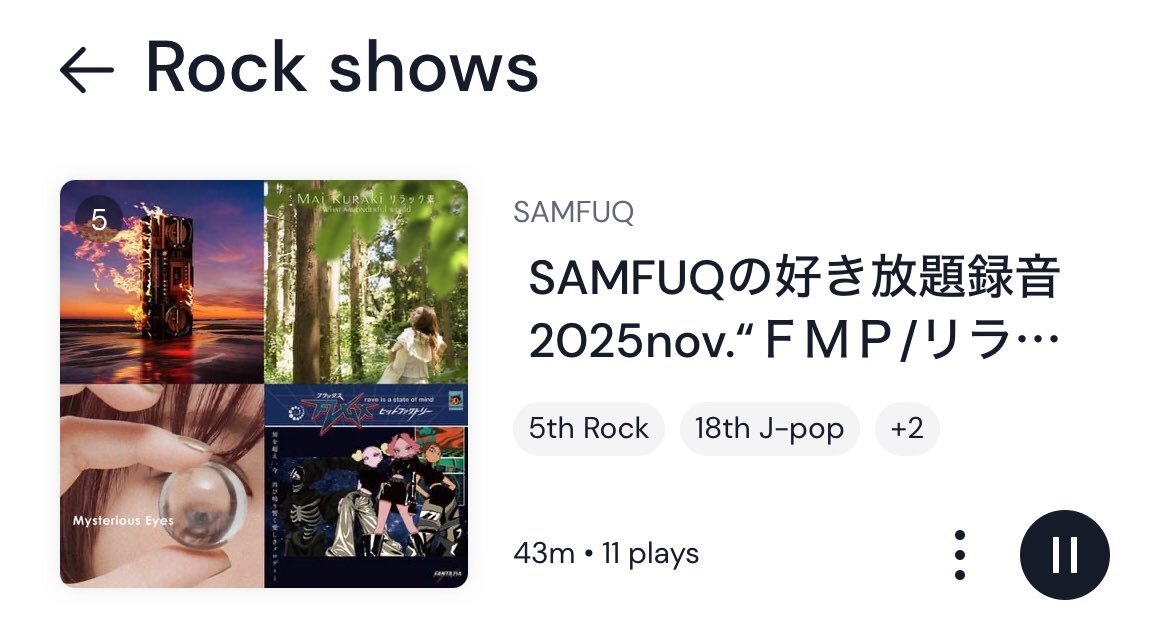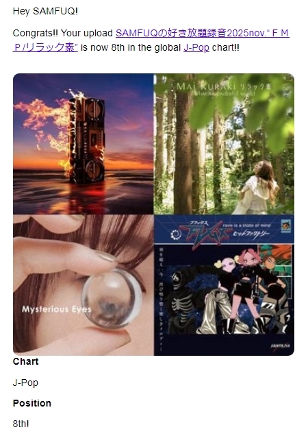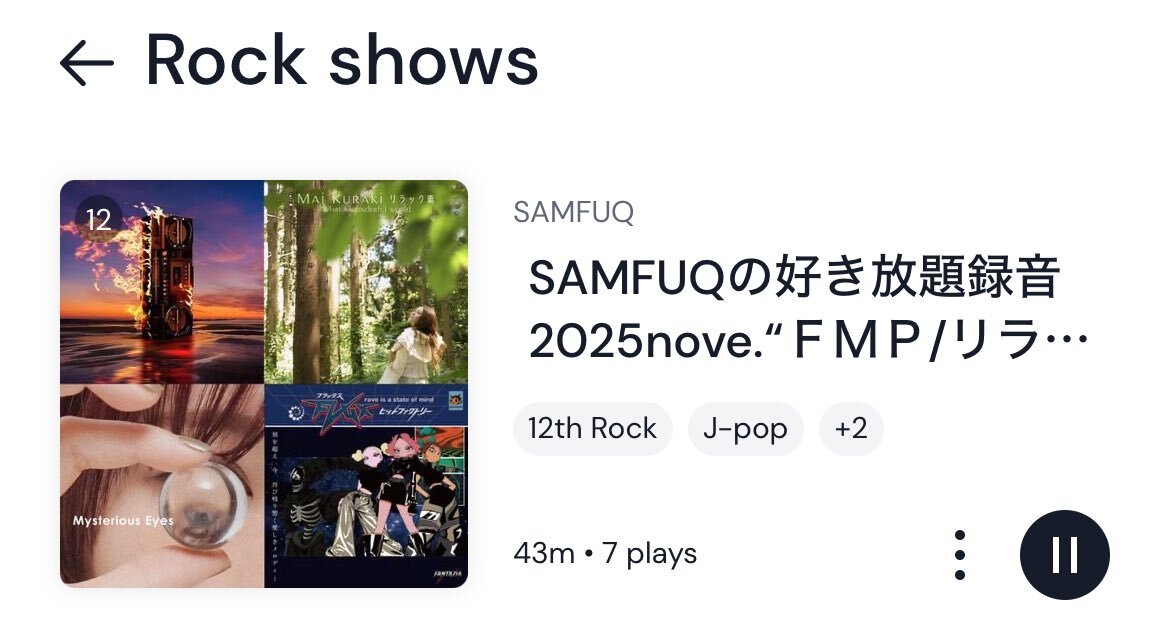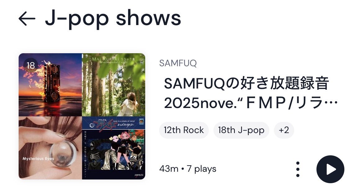 ゴ・キター・クのMixcloudランク確認 I'm 8th in the J-Pop chart 👉mixcloud.com/SAMFUQ/251108/🏌️‍♂️ #Jpop @mixcloudより J-POP8⃣位、J.Rock4⃣位に。 #Bʼz #倉木麻衣 #青いガーネット #HiiTFACTORY #PAMELAH #ZARD #FIELD_OF_VIEW #MANISH #ZYYG #遠藤正明 #生沢佑一 とか #Beingしか勝たん pic.x.com/3zE7m5ySAG x.com/beingriderfrea…
