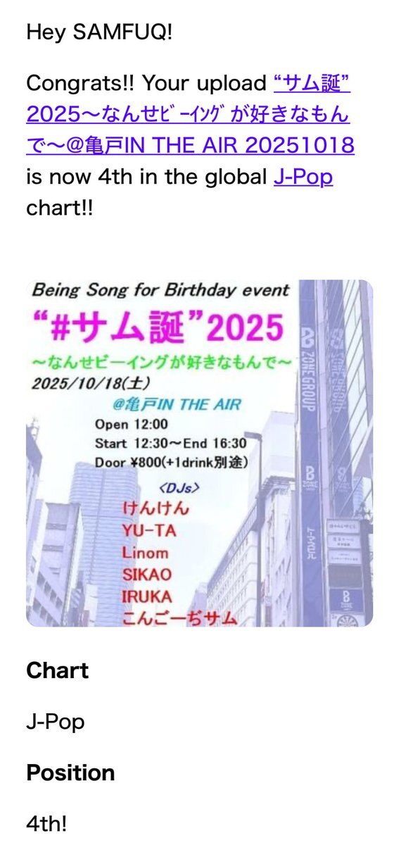 出勤前に今夜のMixcloudランク確認 I'm 4th in the J-Pop chart 👉mixcloud.com/SAMFUQ/samtan2…🎂 #Jpop @mixcloudより J-POP4️⃣位、J.Rock2️⃣位へ⤴️ #サム誕 #大黒摩季 #Bʼz #ZARD #新浜レオン #MANISH #牧穂エミ #KeyWestClub #DALI #PAMELAH #HiiTFACTORY #小松未歩 #青いガーネット とか pic.x.com/ra76E2Mnn9 x.com/beingriderfrea…