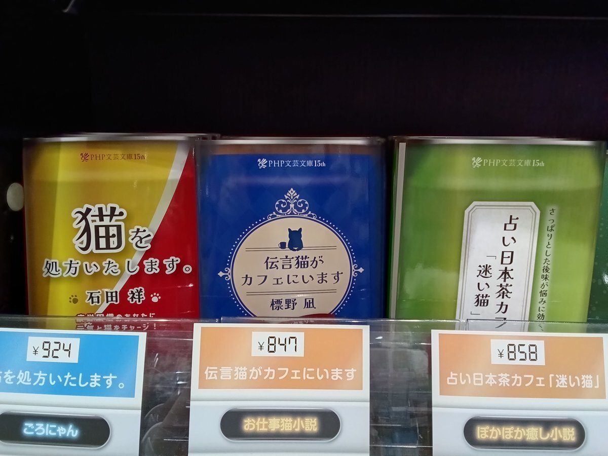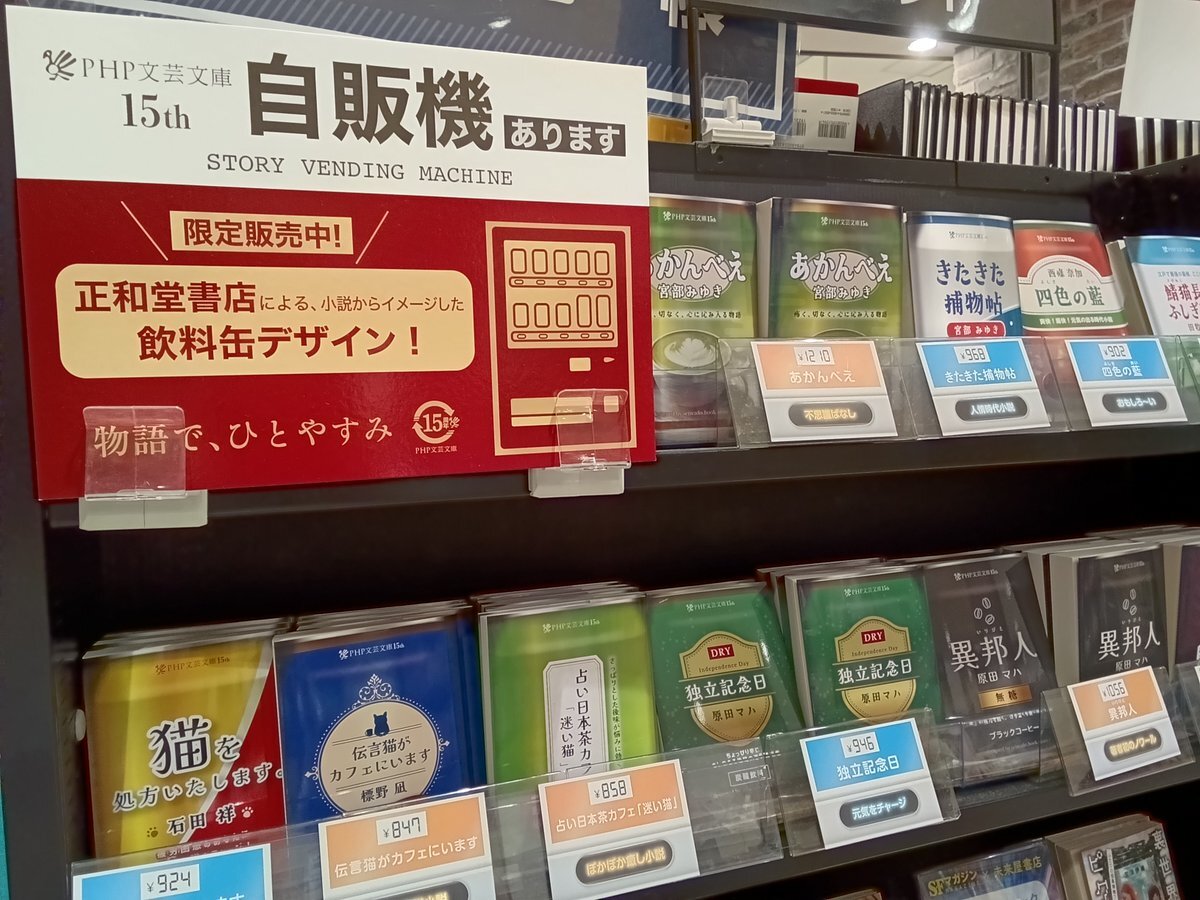 本の自販機あります😆 コレ、ワクワクしませんか‼️ どんな1冊に出会えるかはお楽しみ…🎁 #正和堂書店 #PHP文芸文庫 pic.x.com/7xwqzX2bWG