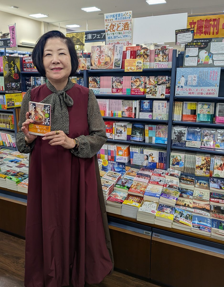 【著者様ご来店】 本日「 #婚活食堂 」( #PHP文芸文庫 )シリーズの著者、山口恵以子さんにご来店いただき、直筆のサイン色紙と #サイン本 を頂きました。 ありがとうございます!! D7-18(新刊・話題の作品コーナー)にて出版社の垣根を越えて作品を大プッシュ中ですので、是非ご来店くださいませ。 pic.x.com/xyxcPXgEo1