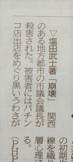 先日、神戸新聞にて『崩壊』(塩田武士著、PHP文芸文庫)が紹介されました。 直木賞候補となった『踊りつかれて』や、来年映画が公開される『存在のすべてを』など数々の作品の「原点」となる本作。 警察小説の魅力もたっぷりです。 #塩田武士 #PHP文芸文庫 #崩壊 #神戸新聞 #関西 #PHP研究所 pic.x.com/jUcYSYkDdd