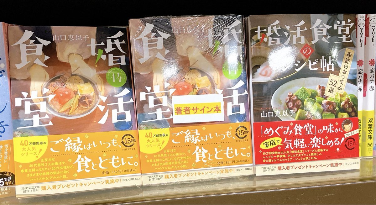 #山口恵以子 さん『#婚活食堂 13 』(#PHP文芸文庫)サイン本は完売いたしました。 たくさんのご来店お買い上げ、誠にありがとうございました🙇‍♀️