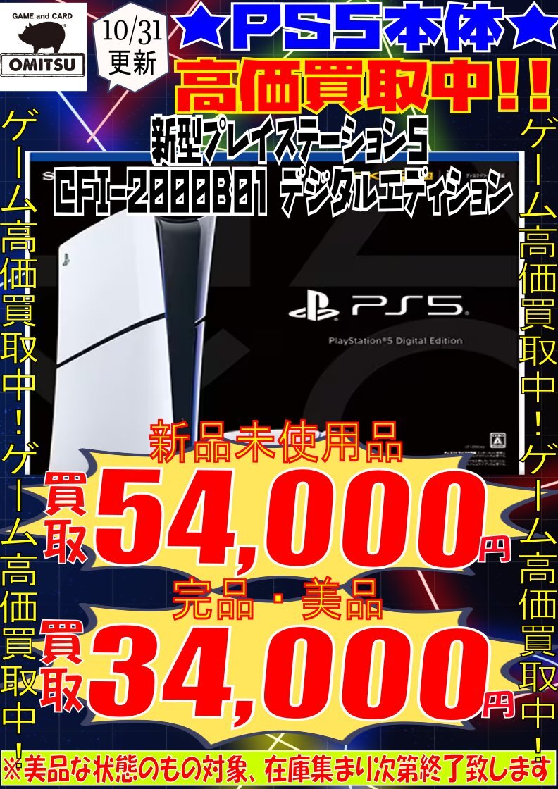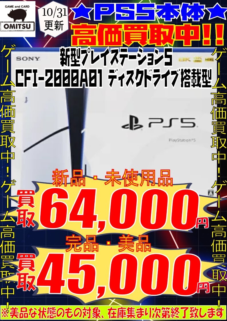 🐷今週のPS5本体買取価格🐷 ⭐PlayStation 5 新型モデル CFI-2000A01⭐ 🔴新品・未使用品 64000円買取🔴 ⭐PlayStation 5 デジタル・エディション 新型モデル CFI-2000B01 🔴新品・未使用品 54000円買取🔴 #おみつ #PS5本体 #買取 pic.x.com/MePXxba74Y