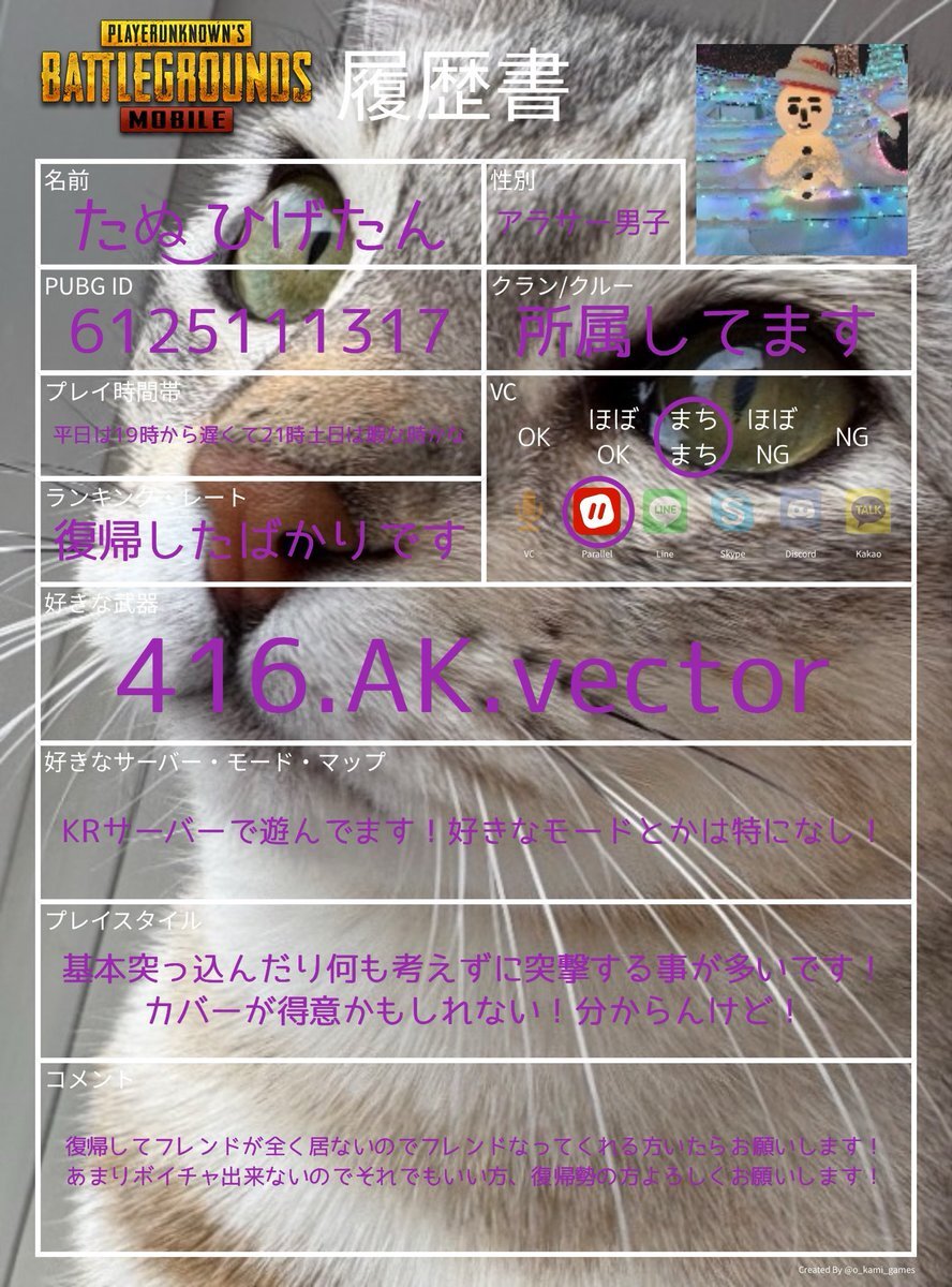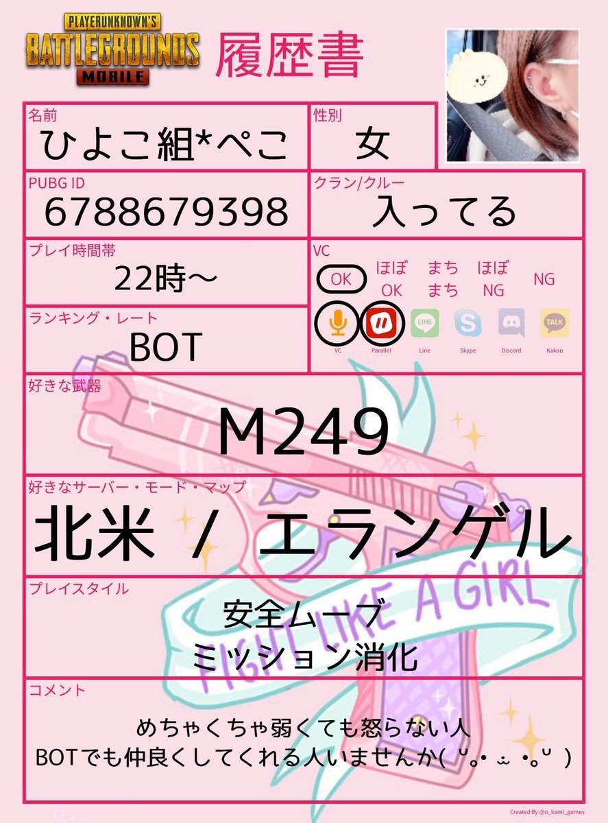 履歴書🏷𓈒𓏸︎︎︎︎ 弱すぎるので キルムーブできません(;;) インした時に遊んでくれたり 弱くても許してくれる方居ませんか🪄 お友達ください꒰՞⸝⸝ᴗ ·̫ ᴗ⸝⸝՞꒱ #PUBG履歴書 #PUBG_MOBILE #PUBG_MOBILEしてる人と繋がりたい pic.x.com/WoMWIeYsXF