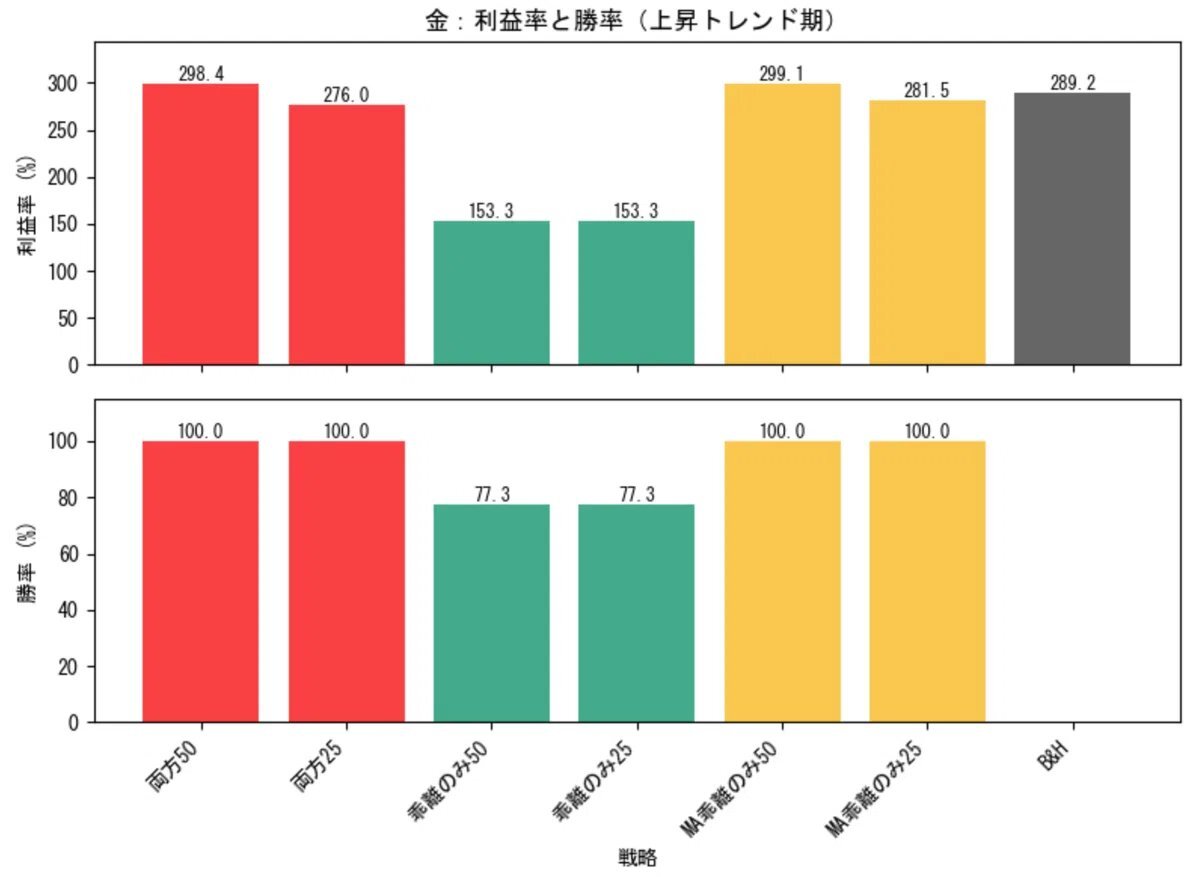 1540系ETFで「理論値乖離率」が本当に有用なのかをストラテジーで検証しました。結論としては👇 🔹 ボラティリティが高い金属ほど効果が大きい 特にパラジウム、プラチナでは25MA × 理論値乖離 が Buy&Hold や50MAを上回る成績に。 🔹 金・銀は Buy&Hold と同等(=底上げ効果は小)