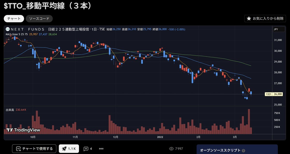 僕が公開している「移動平均線3本」インジケーターも、PineScriptで作成したものです。 jp.tradingview.com/script/ZqYYbGt… 標準の移動平均線だと1本ずつ設定が必要なので、面倒くさいなーと思ったのが作成のきっかけ。 Myカスタム・インジケーターが作れるのも、魅力です。 #TradingView #PineScript pic.x.com/SMTpjaeLzg