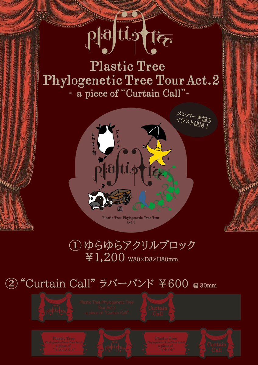 Plastic Tree Phylogenetic Tree Tour Act.2 -a piece of “Curtain Call”- 【追加GOODS販売のお知らせ】 📍10/24 神奈川 15:30 ※Plastic Tree Official Fan Club[JellyFish Breed]会員様のみご購入いただけます。 ▼詳細 plastic-tree.com/various/news/2… #PlasticTree #JellyFishBreed pic.x.com/Y4IvubpzyX