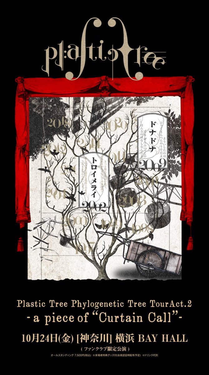\追加公演/ Plastic Tree Phylogenetic Tree Tour Act.2 -a piece of “Curtain Call”- 📍10/24(金) 横浜BAY HALL ※ファンクラブ限定公演 ※来場者特典グッズ付 🎫ファンクラブ3次受付(先着) 明日10/18(土)23:59まで ※購入特典あり ▼公演詳細 plastic-tree.com/various/live/?… #PlasticTree pic.x.com/MujpSJ9jWK