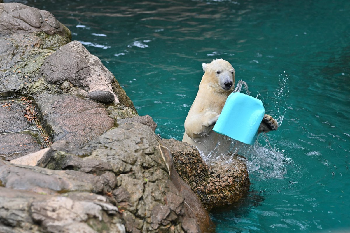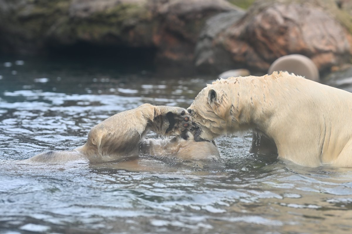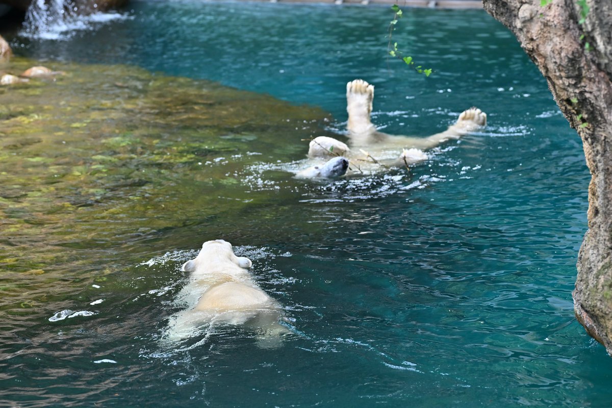 おともだち水色ちゃんは親子に大人気 #ライ ちゃんが放り投げて飛び込もうとしたら、#イッちゃん にとられてしまいました ライちゃん、取り返しに向かいます! 2025.10.13📷 #ズーラシア #ホッキョクグマ #アニマルサプリ #Plenaで撮りました pic.x.com/VbyrSBKckz