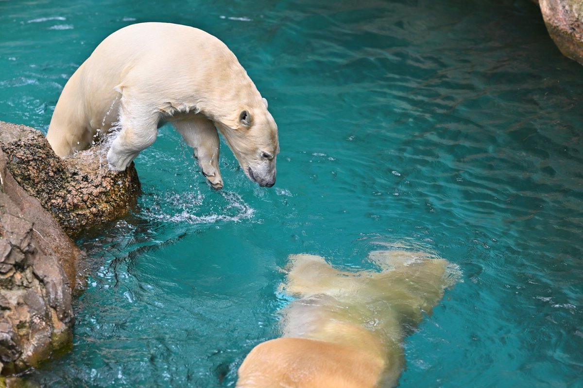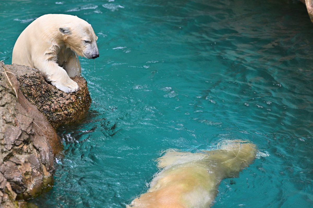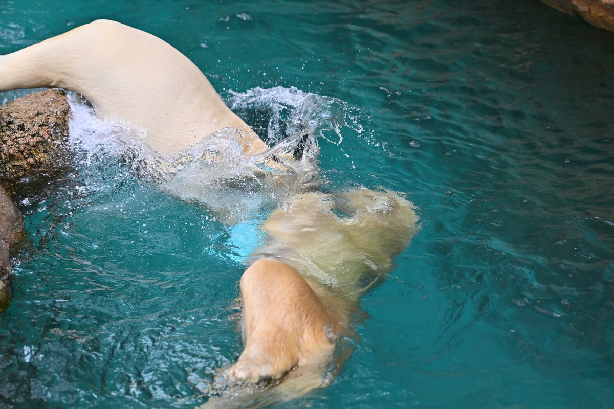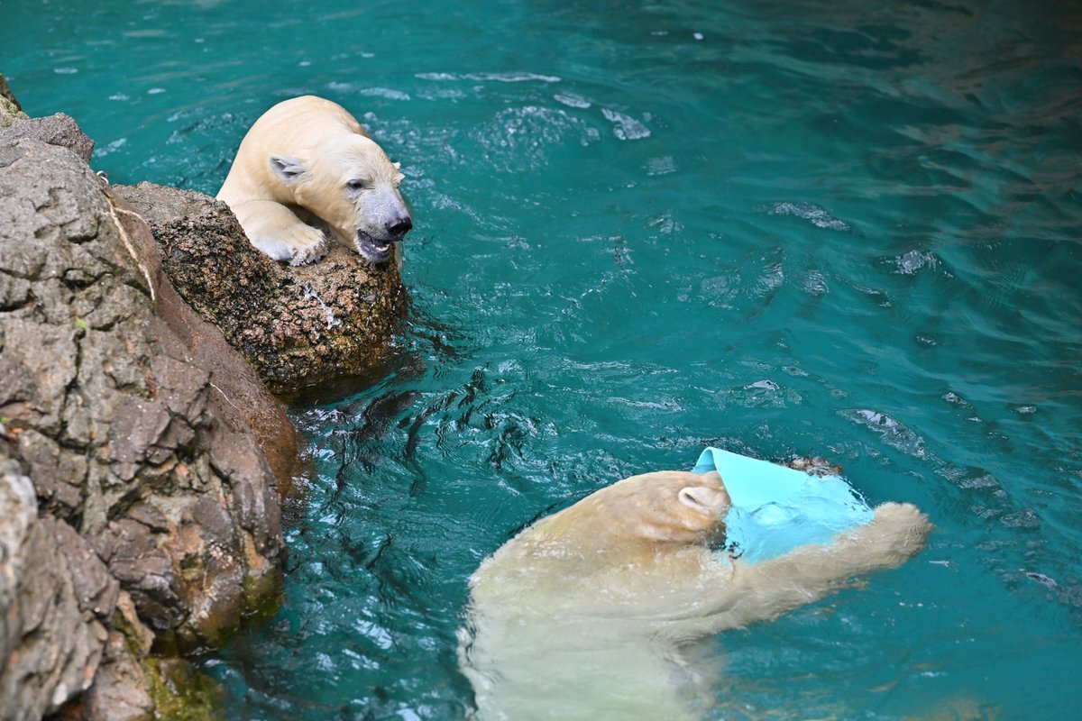 おともだち水色ちゃんは親子に大人気 #ライ ちゃんが放り投げて飛び込もうとしたら、#イッちゃん にとられてしまいました ライちゃん、取り返しに向かいます! 2025.10.13📷 #ズーラシア #ホッキョクグマ #アニマルサプリ #Plenaで撮りました pic.x.com/VbyrSBKckz