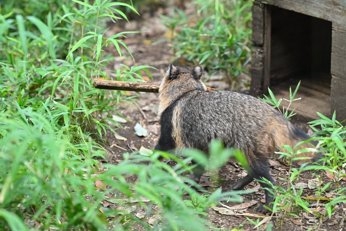 小屋の屋根からはがした棒をくわえて走り回っていた #茶豆 さん 時々やぶに引っかかって進めなくなっていたのがエンリッチメントと言えば言えるかなぁ💦 2025.10.13📷 #ズーラシア #ホンドタヌキ #アニマルサプリ #Plenaで撮りました pic.x.com/Ea8da5eVgF