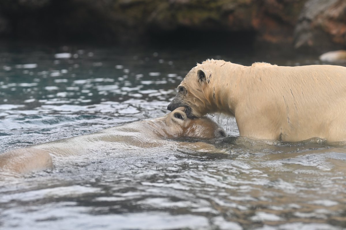 ママ!それ貸して~ いくよ~ どっぼーん💦 ママの回避勝ち ライちゃんは回収に失敗しました😅 2025.10.13📷 #ズーラシア #ホッキョクグマ #ライ #イッちゃん #アニマルサプリ #Plenaで撮りました pic.x.com/9Nvx1ClshO