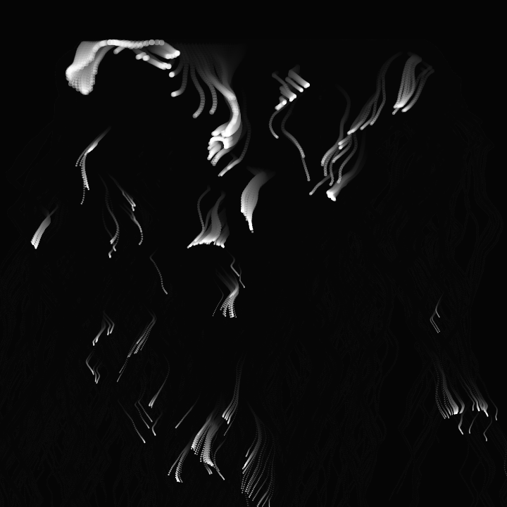 //#Processing 南総里見八犬伝 int n=30000,i; float a[]=new float[n*2],d,r,p,t; PFont f; String s="仁義礼智忠信孝悌"; void setup(){ size(800,800); for(i=0;i<n;i++){ d=99*randomGaussian(); r=random(TAU); a[i]=d*sin(r);a[i+n]=d*cos(r); }background(0);} void draw(){ fill(0,9); //cont. pic.x.com/777gbV1cuZ