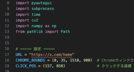 どーも、まさです PythonのPyAutoGUIを使って 自動処理スクリプトを作成中 いままで或るパターンを 画像認識するスクリプトが うまく動作しなかったんだけど やっと謎が解けた! よかった〜〜〜 これで一歩前進できる〜 歩き出せば道が見えてくる、だね #python #pyautogui #副業 pic.x.com/I2CJWeVc2I