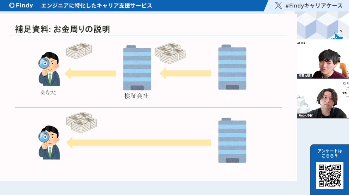 第三者検証と事業会社でのお金周りの違い! 「事業会社QAの方が年収が上がると言えなくもない?」 こうやって図で見れるのは、意外と貴重なのでは⋯? #Findyキャリアケース #QAエンジニア pic.x.com/6RzojUdnyg