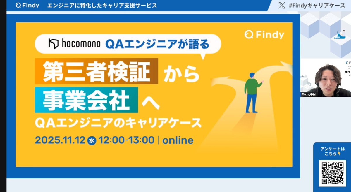 始まりました〜👏👏 お気軽にコメントください! #Findyキャリアケース #QAエンジニア pic.x.com/BZwpzw6P35