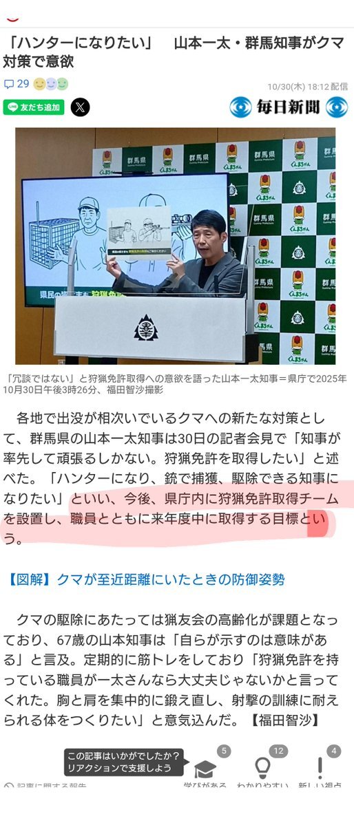 "群馬県 県庁内に狩猟免許取得チームを設置し、職員とともに来年度中に取得する目標" 知事を頼もしいなんて思ってたら とんでもない腑抜けです 在日職員が潜んでいる可能性大です ターゲットは熊ではなく 県民かもしれません 今すぐ #QAJFの情報を追ってください #国防動員法 #山本一太 #売国奴 pic.x.com/dIW5ul1RBH x.com/mark1717351731…