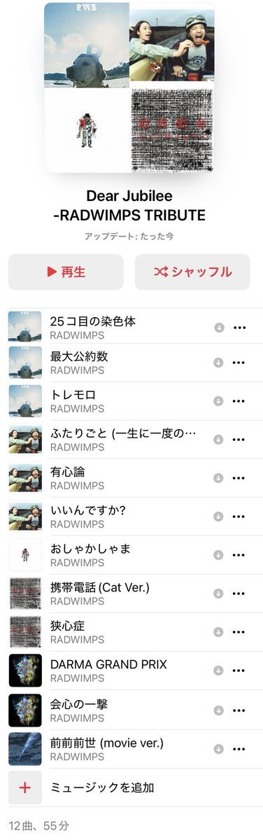 アーティストらしさももちろんありつつ、原曲へのリスペクトも感じられて、本当に本当に大切に大切にしたいアルバムだ。 よーじろーが眠れなくなる気持ちも、きっとほんのちょっとかもしれないけど、わかるよ。 #RADWIMPS20th #DearJubilee #RADWIMPSTRIBUTE