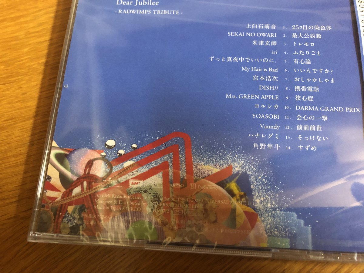 CD届きました💿 どれもスゴい良かった 宮本さんの三味線のアレンジは秀逸!! あまり詳しくはないけど Mrs.GREENAPPLEさんはこんな力強く歌うんだと!カッコ良かった~ #RADWIMPSTRIBUTE #DearJubilee pic.x.com/YJOfkMNEYI