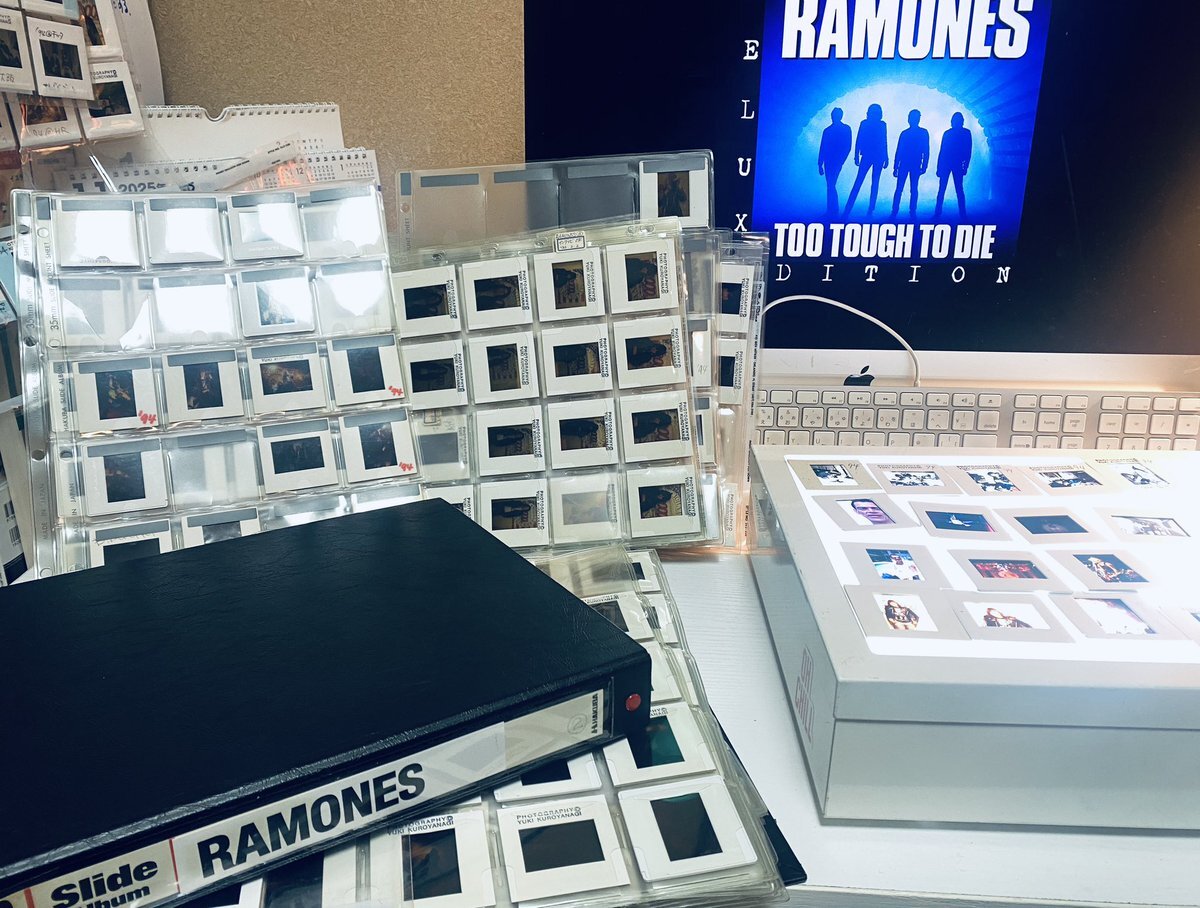 遂に重い腰が上がりました。w データ化してもポジも相変わらず捨てられませんね、このバンドだけは。死ぬ時に一緒に焼いてもらおう🔥映画のフィルム・ロールまである。映写機で見れるやつwwまったく役に立たないが... #RAMONES pic.x.com/zCDIxys4lw
