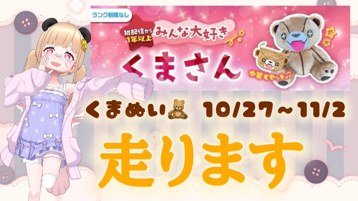 竹村、くまぬいを走りたいと言い出して何年と何ヶ月がたったでしょう…… 今までの誕生日週とは違う…!!! ついに来ました…誕生日に走りたいイベント…😭‼️ 悩んでます……たけむ悩んでます………だって!!!今までは年1回くらいの頻度で走ってたのに!! 今年はずーっとカーニバルだったじゃん!? x.com/takemuha_otome…