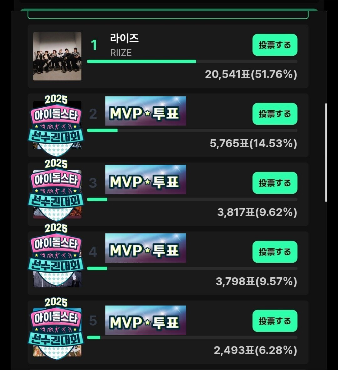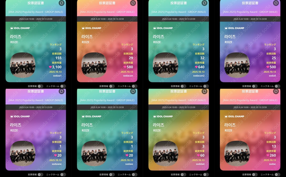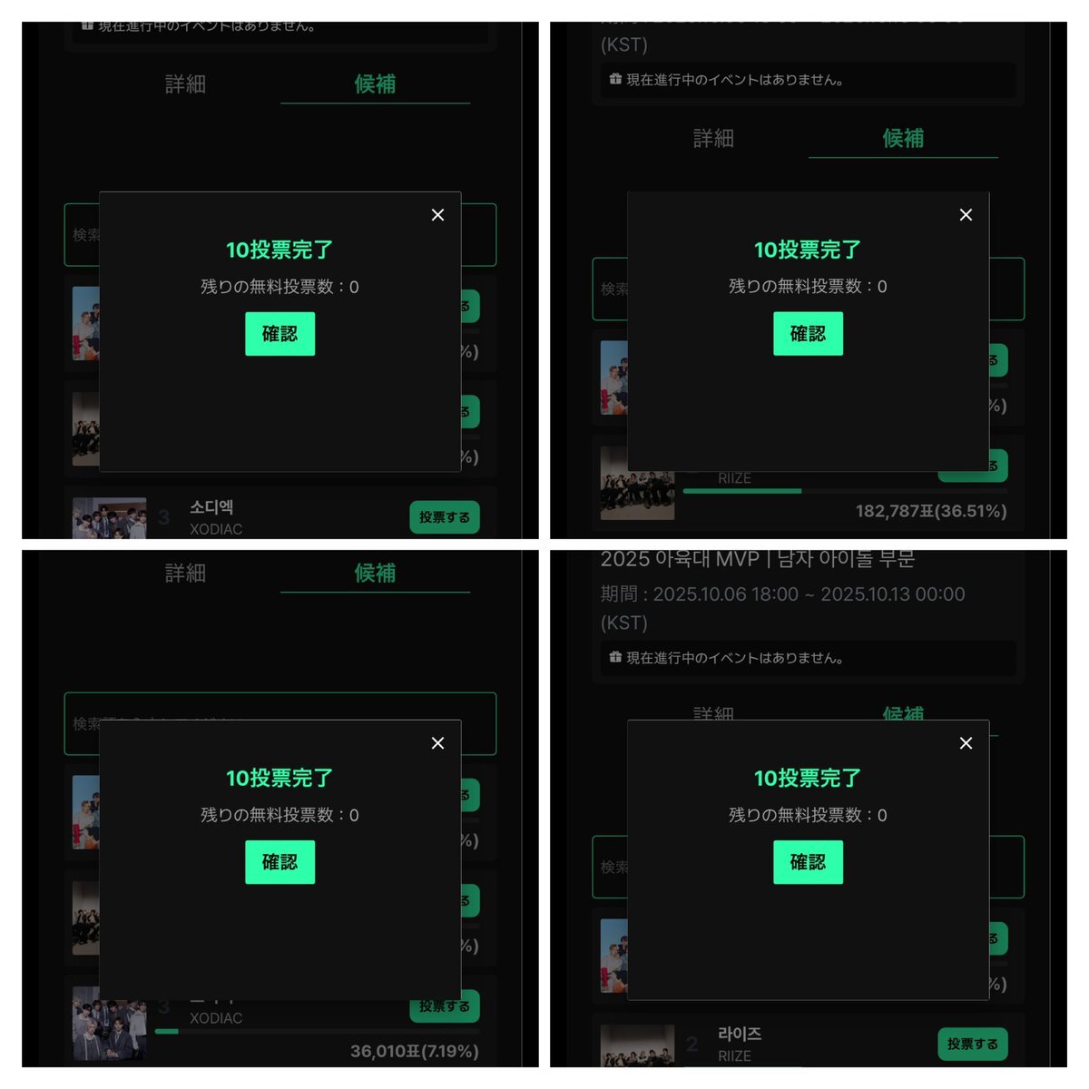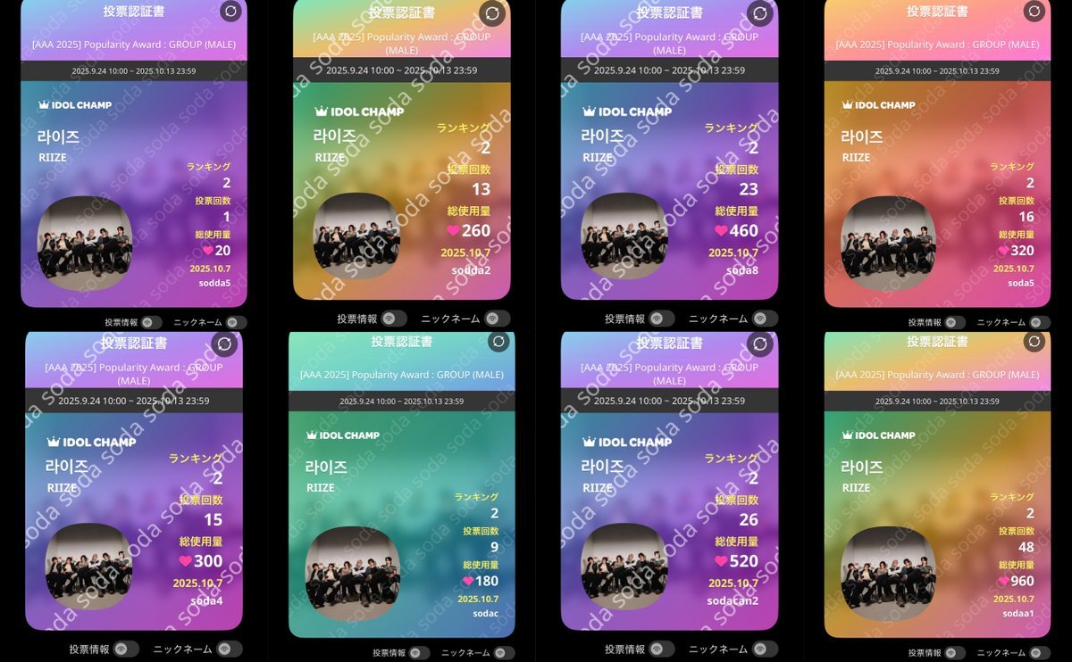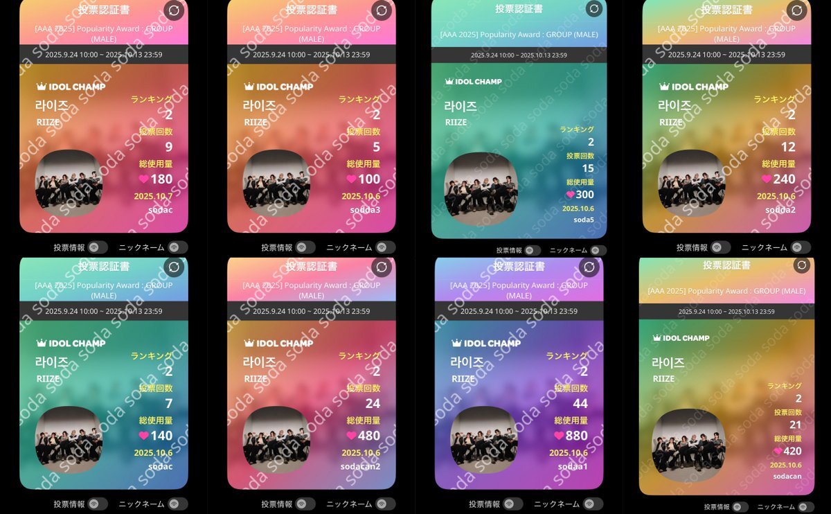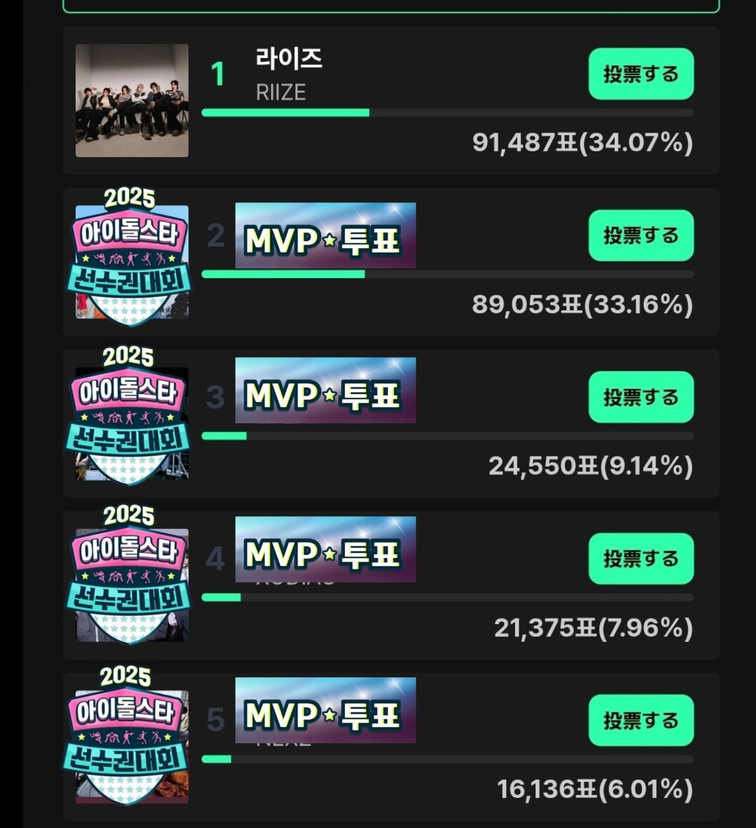 【アイドル陸上選手権(アユクデ) MVP投票状況】 2025.10.08 10:00 📝「男性アイドル部門」でRIIZEに投票してください 🚨抜かされそうです‼️ すぐに複数アカウントを作成し、各アカウントで10票投票してください 📝アカウントはメアドの数だけ作成出来ます