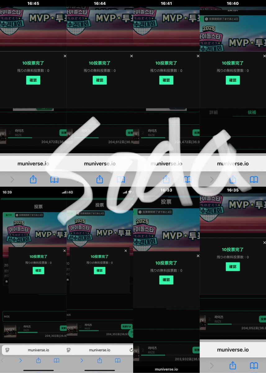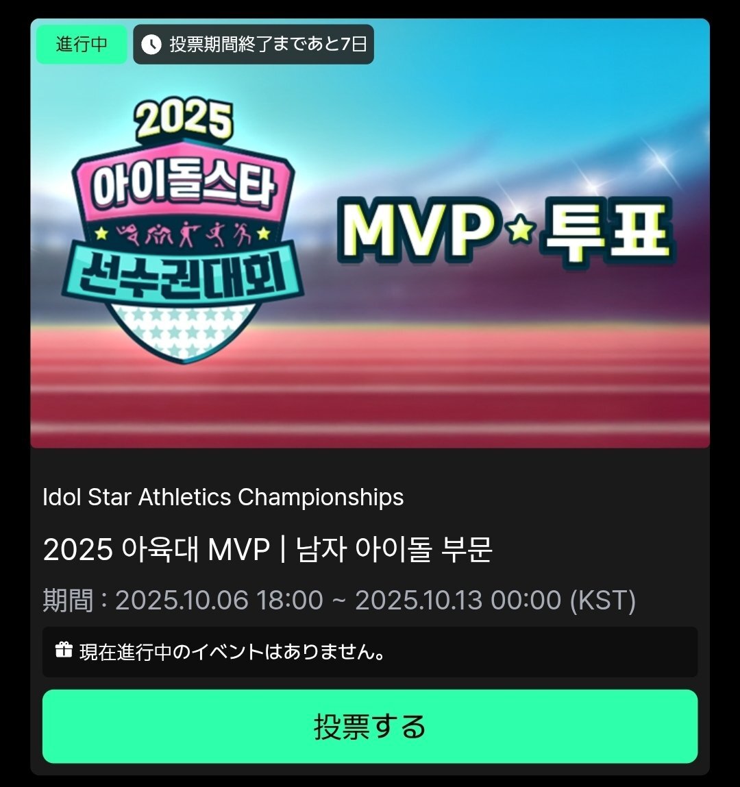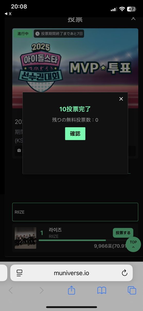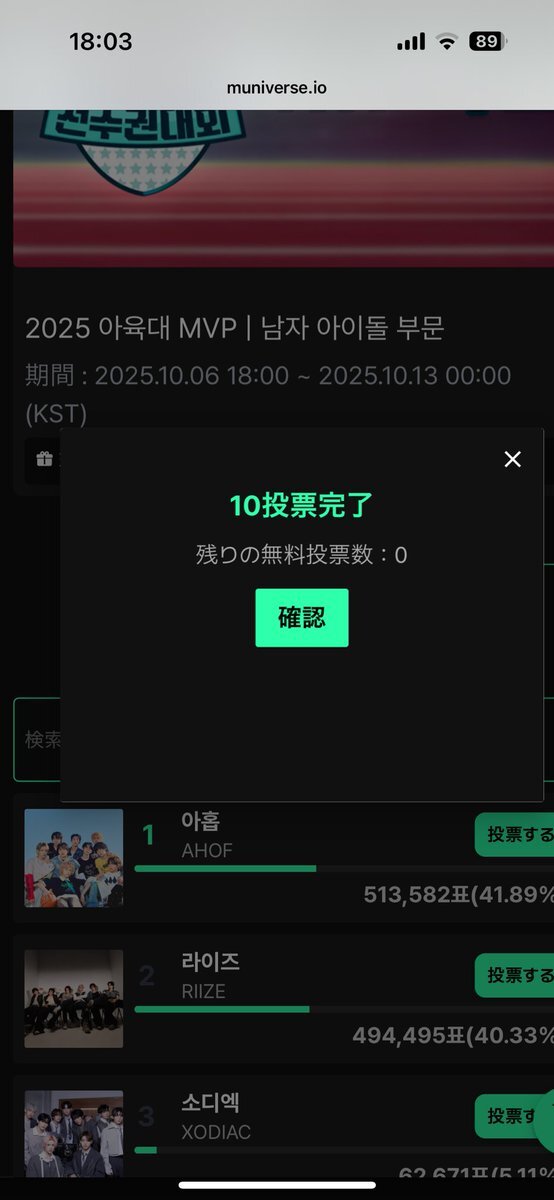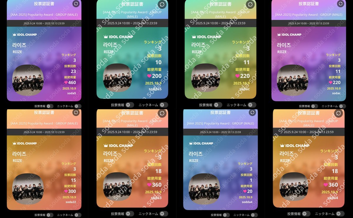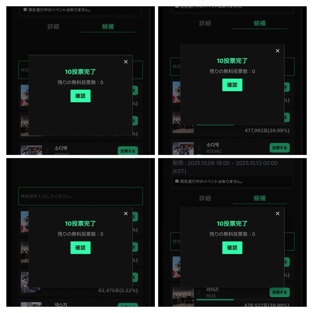 【アイドル陸上選手権(アユクデ) MVP投票状況】 2025.10.08 10:00 📝「男性アイドル部門」でRIIZEに投票してください 🚨抜かされそうです‼️ すぐに複数アカウントを作成し、各アカウントで10票投票してください 📝アカウントはメアドの数だけ作成出来ます