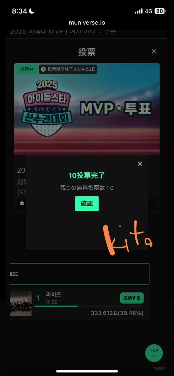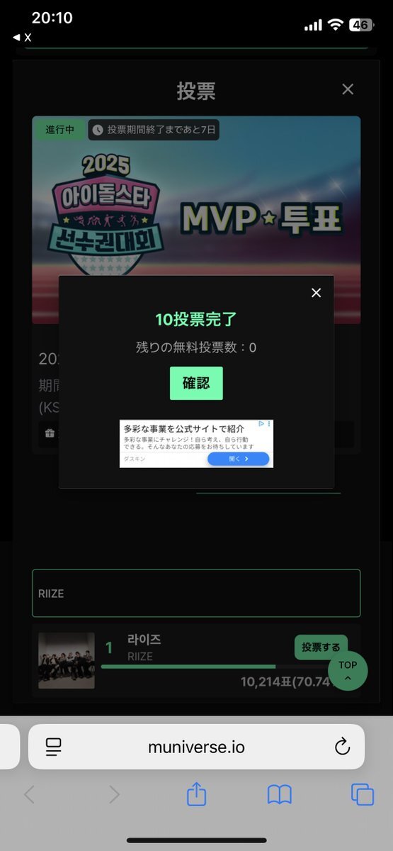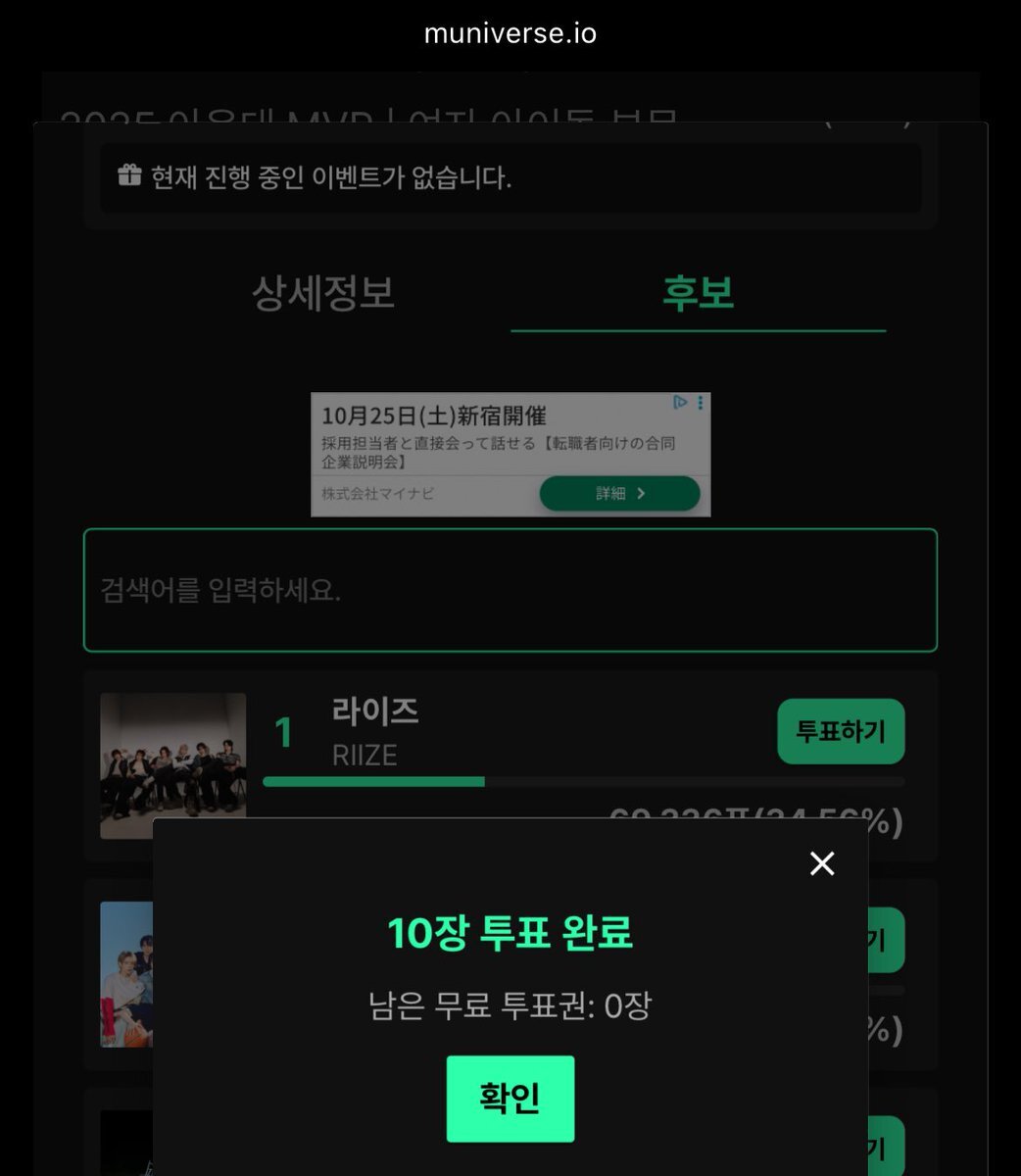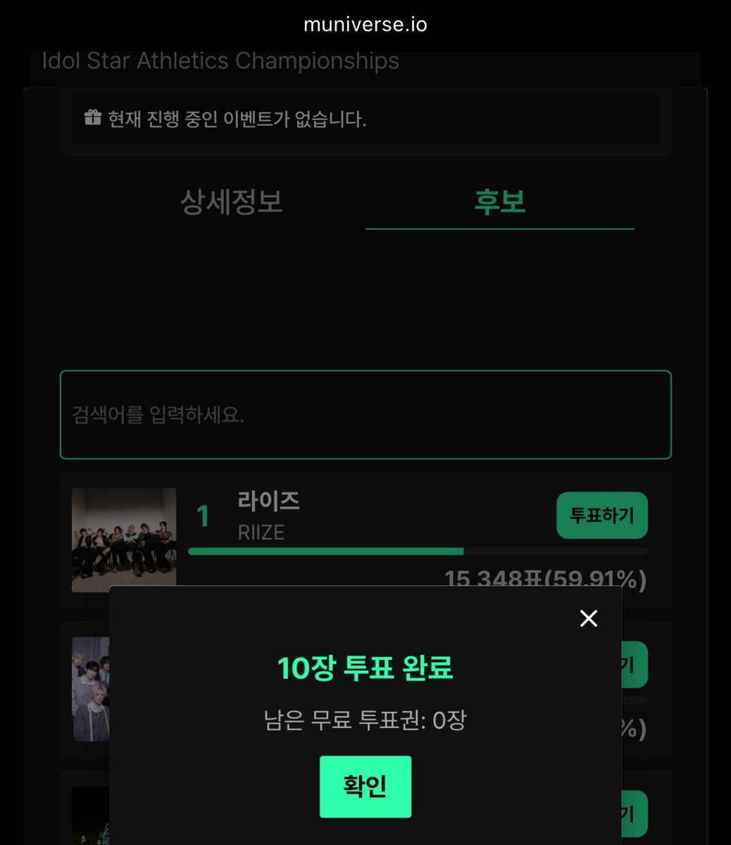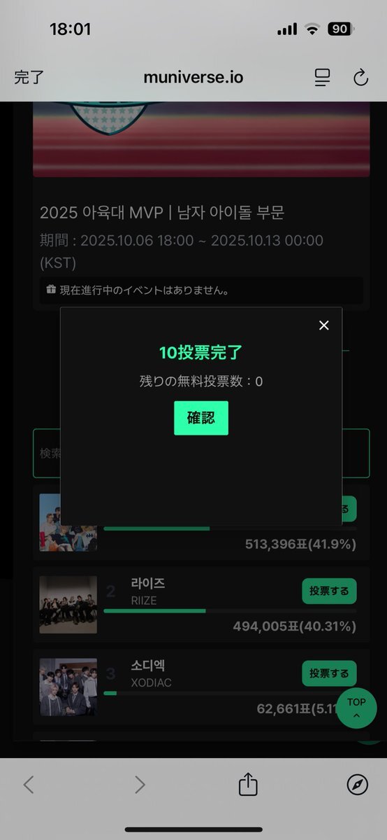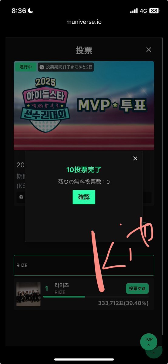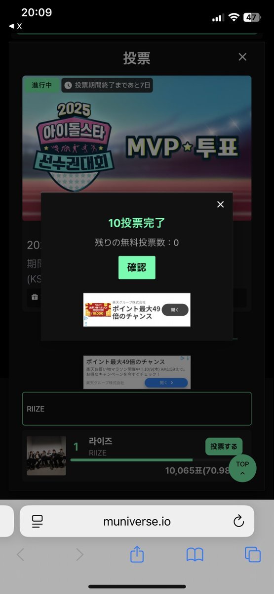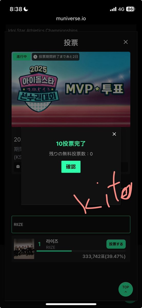 【アイドル陸上選手権(アユクデ) MVP投票状況】 2025.10.08 10:00 📝「男性アイドル部門」でRIIZEに投票してください 🚨抜かされそうです‼️ すぐに複数アカウントを作成し、各アカウントで10票投票してください 📝アカウントはメアドの数だけ作成出来ます