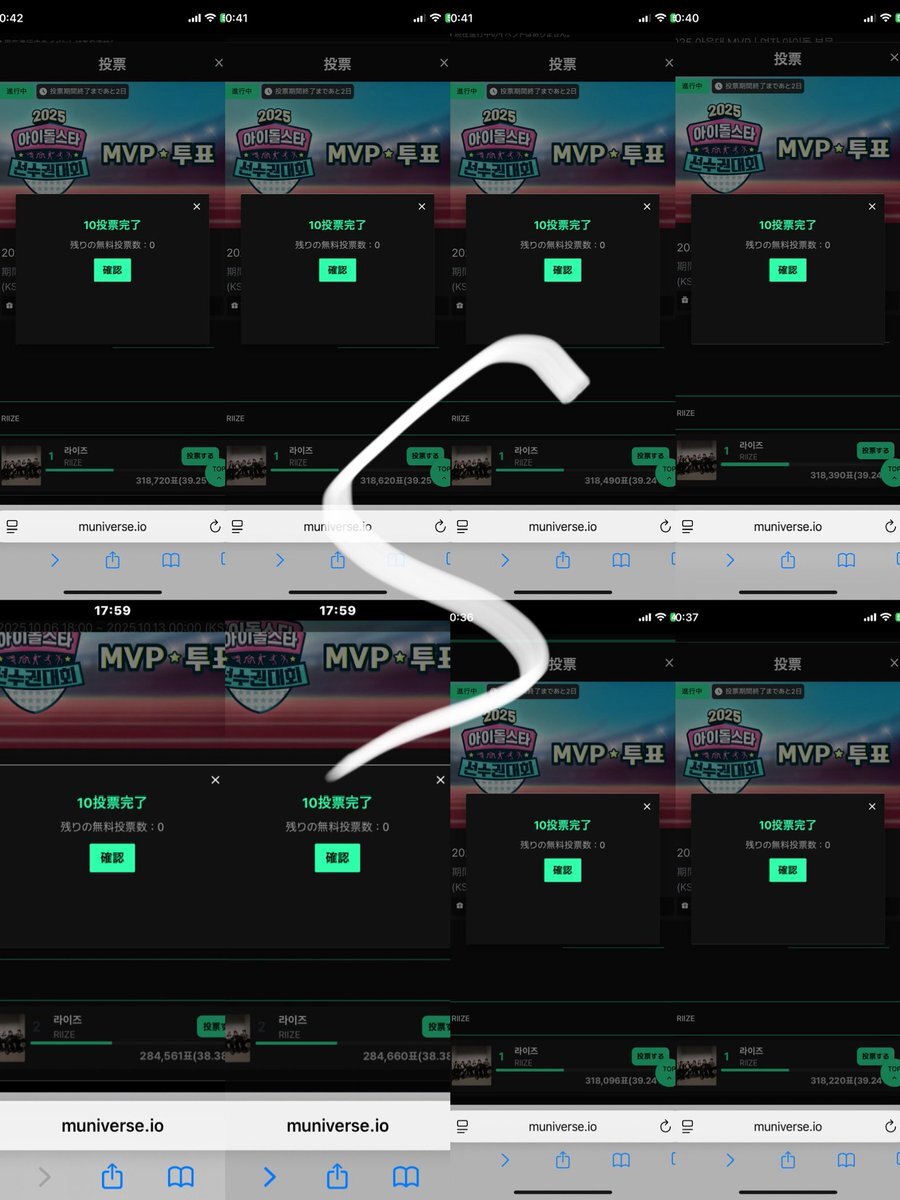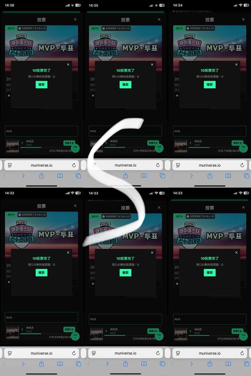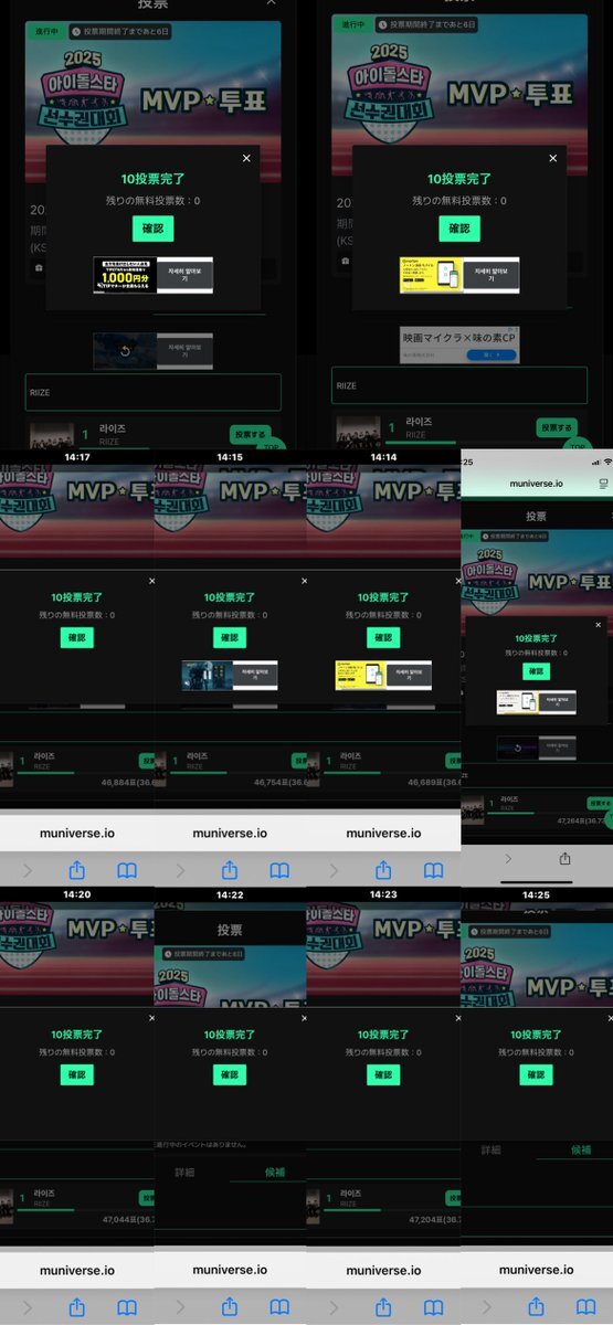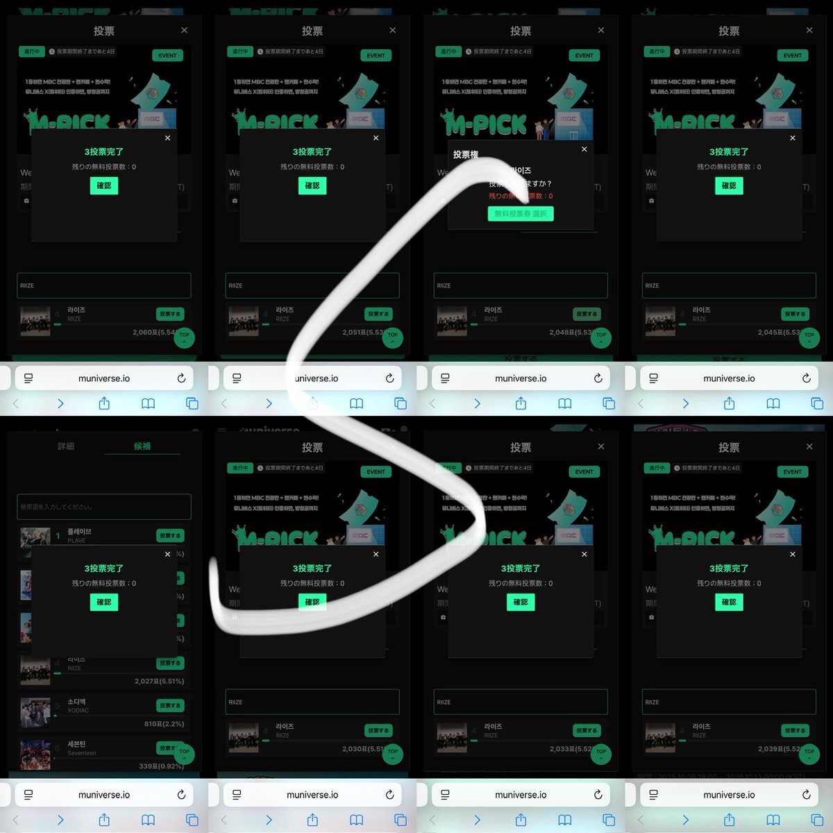 一つ画像撮り忘れましたが 8アカウントで本日分投票しました! 2000アカウントも差がつけられてるなんて💦 本日最終日 ブリズ〜最後まで諦めずに 投票できる方いましたらお願いします🤲 #RIIZE投票 pic.x.com/YB08wHsTWC x.com/briize_voting/…