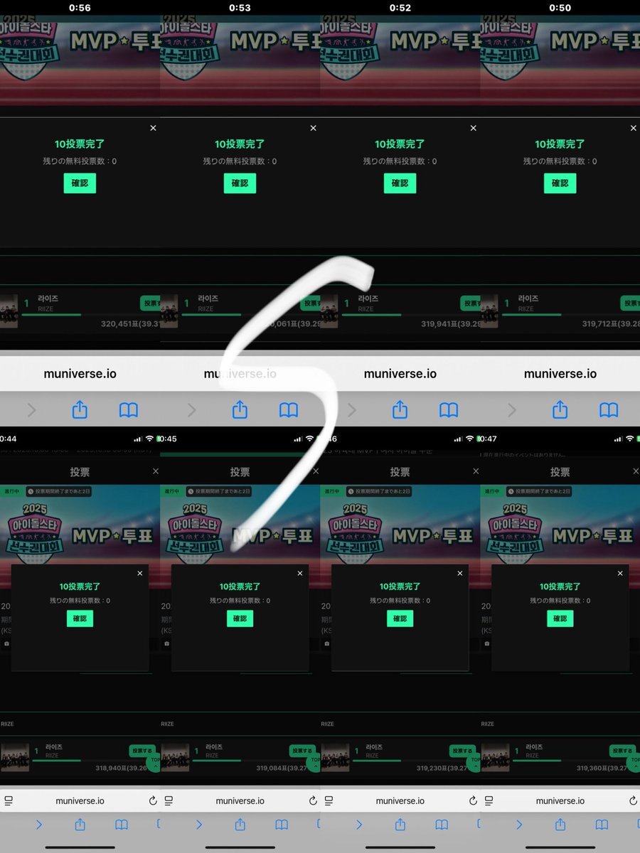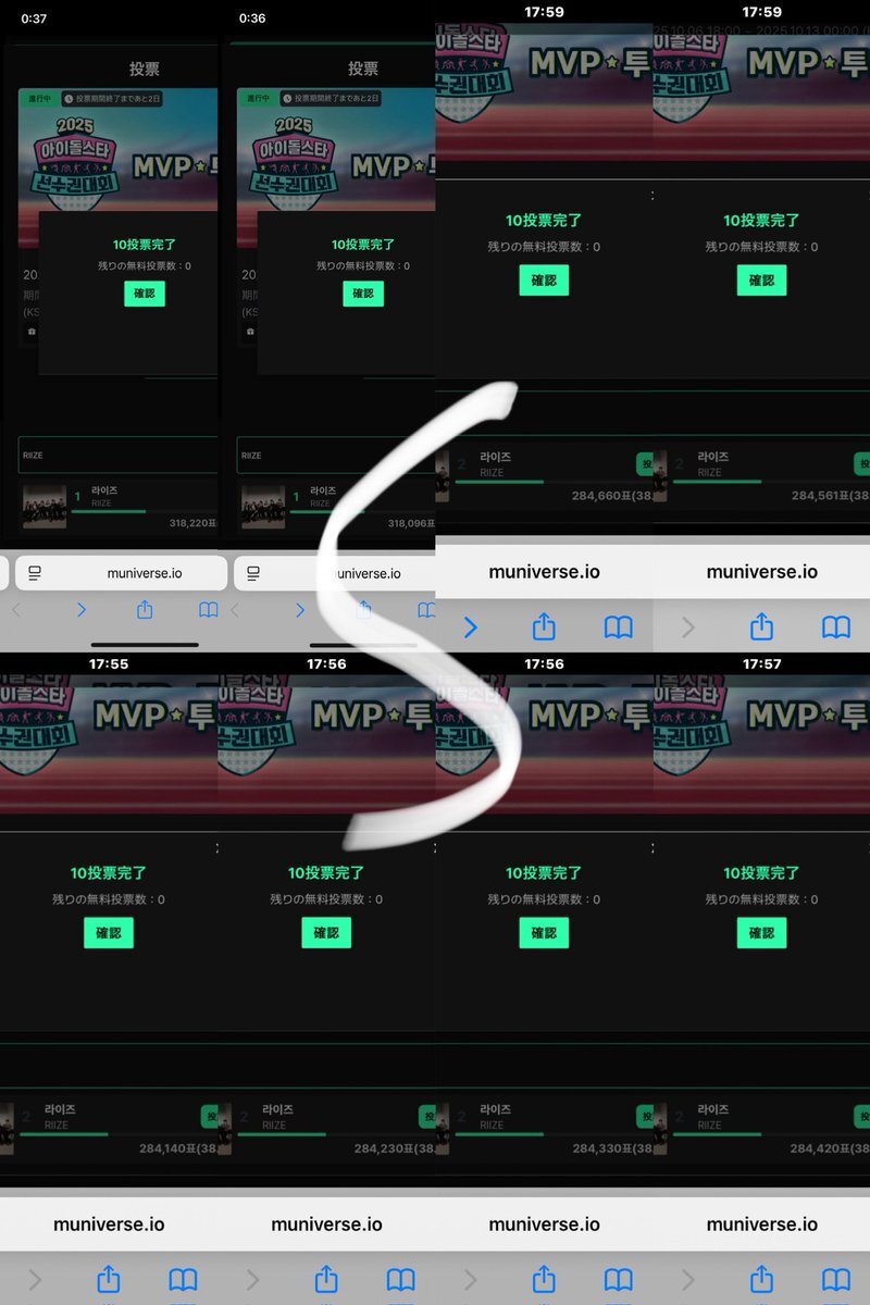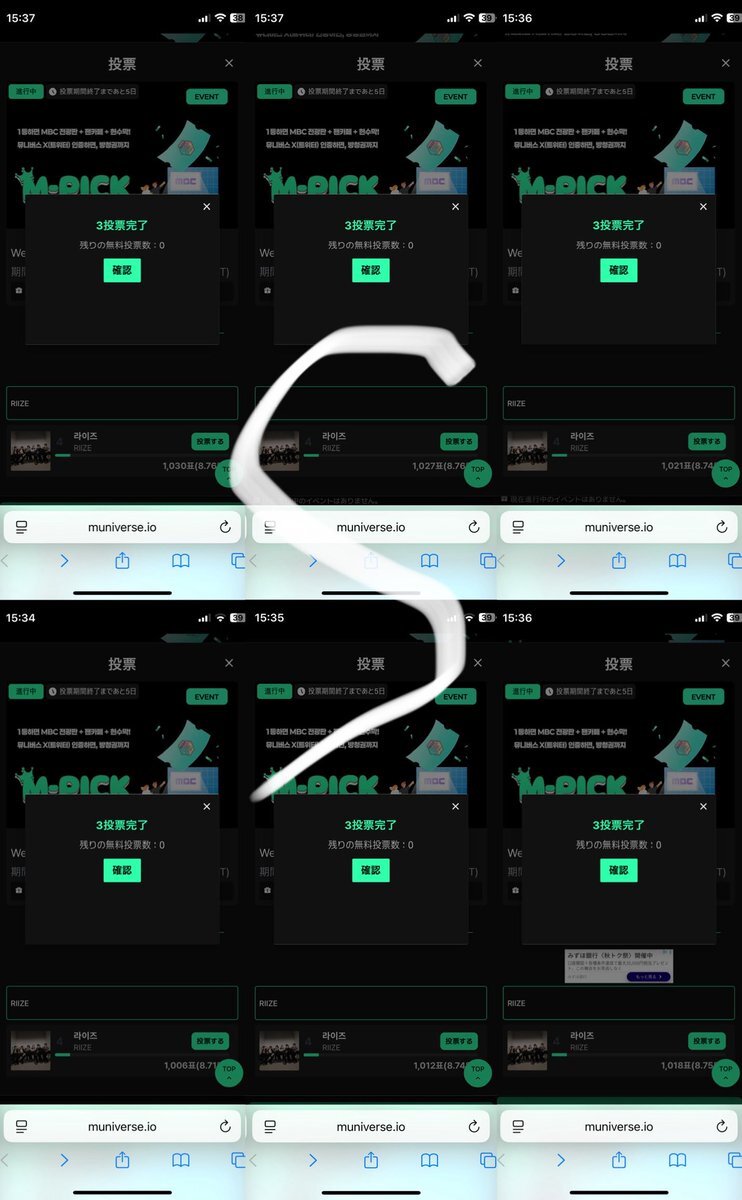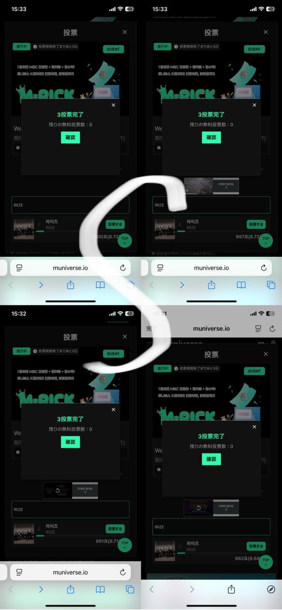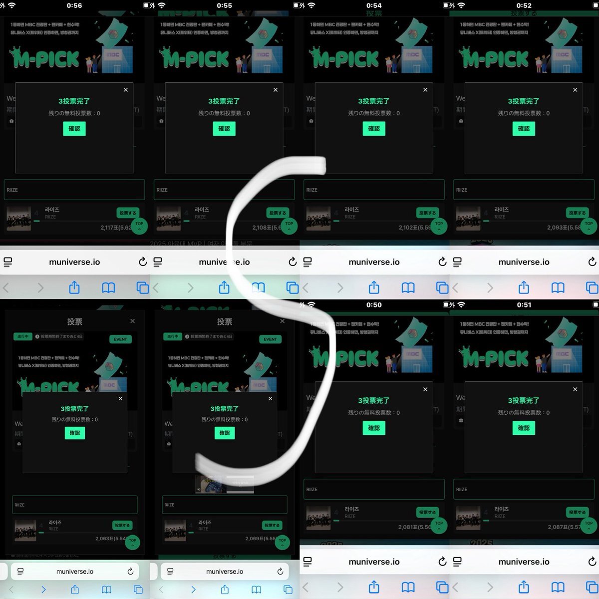 一つ画像撮り忘れましたが 8アカウントで本日分投票しました! 2000アカウントも差がつけられてるなんて💦 本日最終日 ブリズ〜最後まで諦めずに 投票できる方いましたらお願いします🤲 #RIIZE投票 pic.x.com/YB08wHsTWC x.com/briize_voting/…