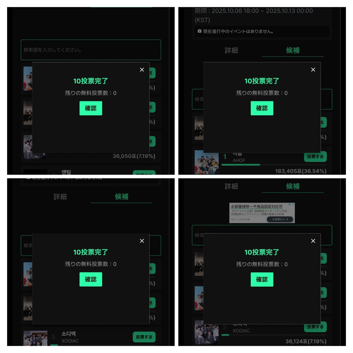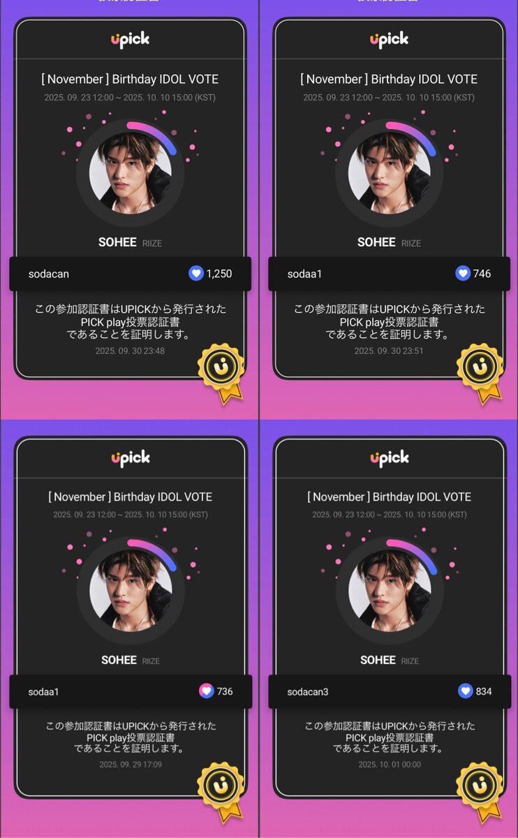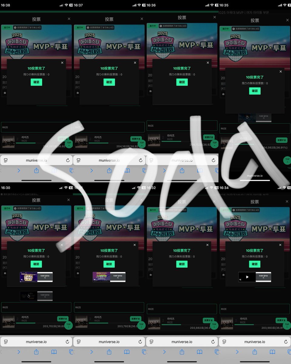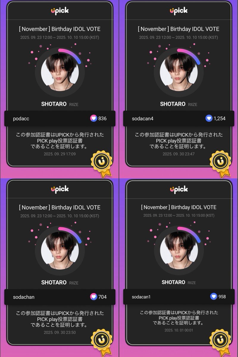 一つ画像撮り忘れましたが 8アカウントで本日分投票しました! 2000アカウントも差がつけられてるなんて💦 本日最終日 ブリズ〜最後まで諦めずに 投票できる方いましたらお願いします🤲 #RIIZE投票 pic.x.com/YB08wHsTWC x.com/briize_voting/…