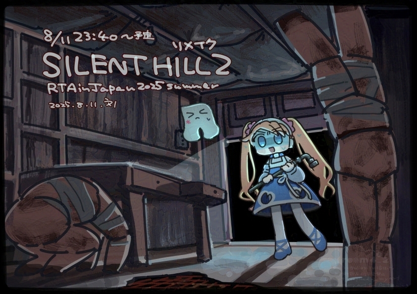 今日のRiJサイレントヒル2リメイクあるよ~新しい方だよ~の応援FA~!ちょっと巻いてるらしいから今日11日23時45分ぐらいかららしい~この後~! 描いたFAのイメージ場所は病院後~資料館までの市街地イメージ~。 #RTAinJapan #RTAちゃん可愛い pic.x.com/6E7HSmDFCV