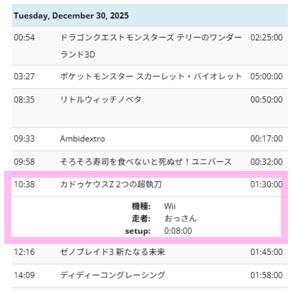 カドゥケウスZは12/30(火)の10時38分前後。おっさん教授の超執刀再び! #RTAinJapan x.com/tdnossan/statu…