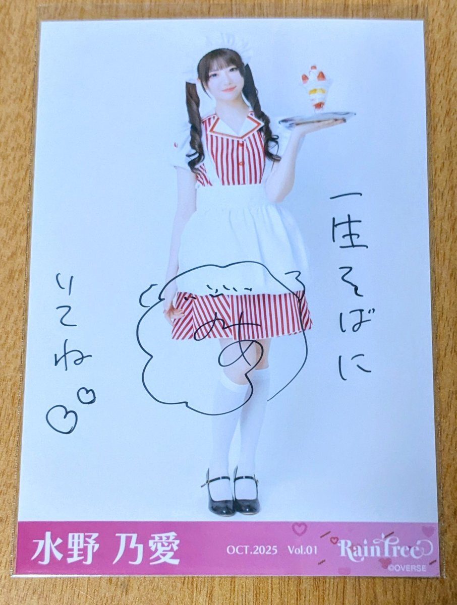 前回メンバー17人ランダムのを2個買ったら同一のが当たったという位にはランダム商品とはいつも巡り合わせが悪いんだけど、この日はかぶりなしで直筆も出てラッキーだった #RainTree #レインツリー真夏のフリラ pic.x.com/rRVO8ohmjX