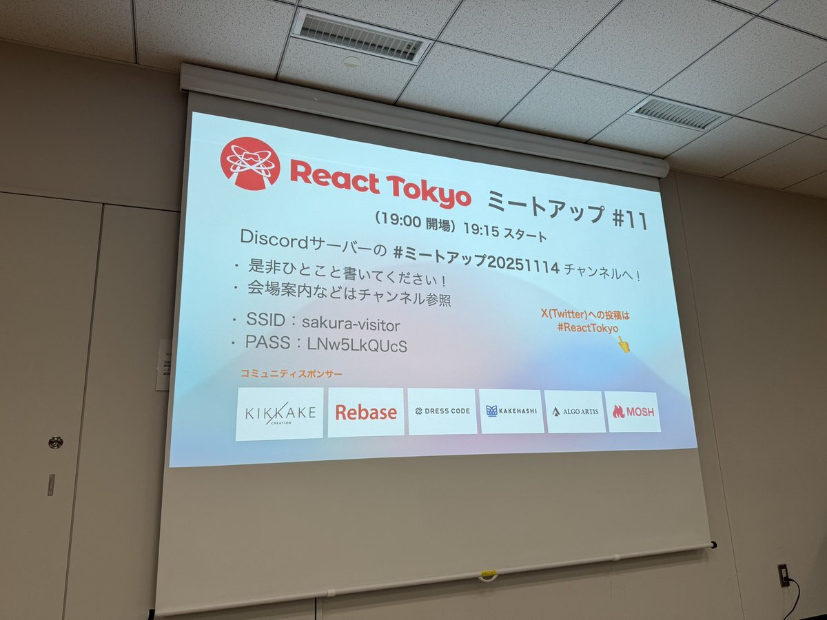 📢React Tokyo ミートアップ #11 終了〜🎉ご参加いただいた皆様、ありがとうございました!後日zenn.dev/p/react_tokyo にてレポート記事を出すのでお楽しみに🎵 👤メイントーク Teruhisa @t6adev ✨スポンサー さくらインターネット株式会社 react-tokyo.connpass.com/event/372887/ #ReactTokyo pic.x.com/fPwoBHG7mN