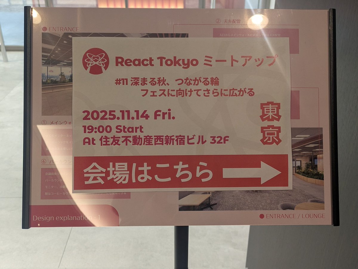 📢React Tokyo ミートアップ #11 11月14日(金) 19時開場 at 新宿 本日この後‼️ 皆様、何と若干ではありますが席が空きました😳 都合がつくよ、という方はぜひ参加申込みしてもらえると嬉しいです☺️ 会場でお会いしましょう👋 react-tokyo.connpass.com/event/372887/ #ReactTokyo