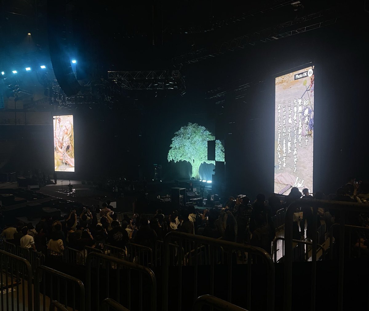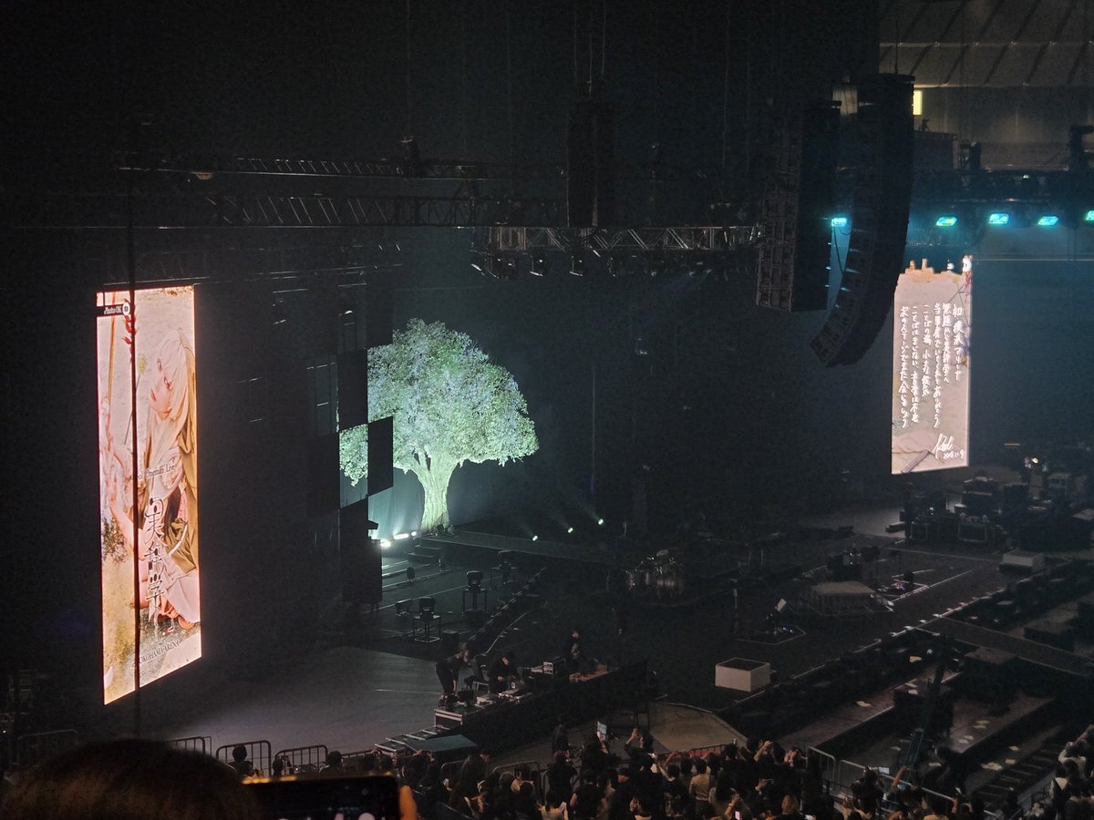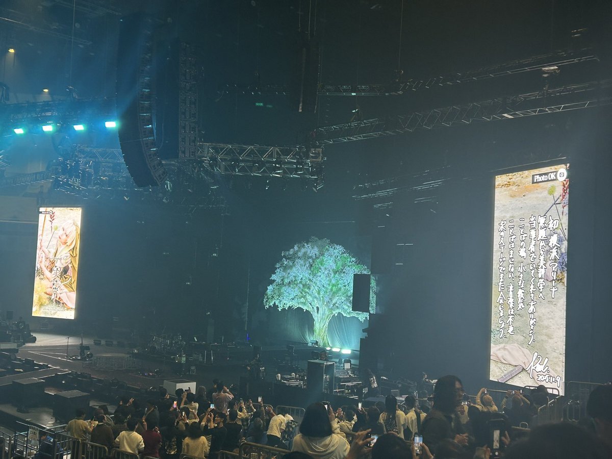 カルチュアはとんでもない良番でも参戦出来なかったから、今回の横アリ参戦出来て本当に嬉しかった〜😭❤️‍🔥 大木のモニュメント?めちゃくちゃ幻想的で綺麗だったし、モニターの演出すごく楽しかった!ミラーみたいに二面になるのも、自撮り配信も! #Reol横アリ無題