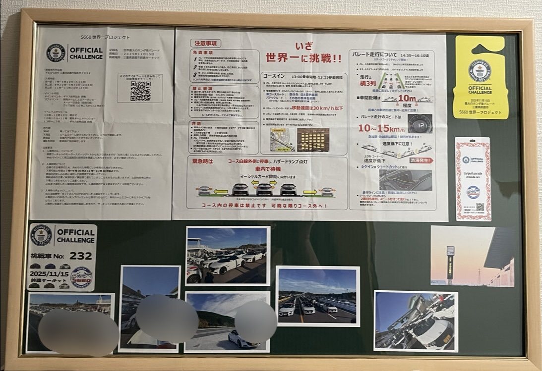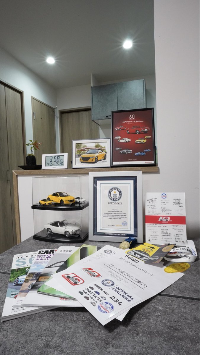 #S660世界一プロジェクト 遅くなりましたがギネス記録達成おめでとう&参加された皆様方お疲れ様でした! 世界一の瞬間に立ち会える事なんてほぼ無いのでいい思い出です! 参加車No.は789でダッシュボードに貼っておきました! pic.x.com/Q4LKvCg4ms
