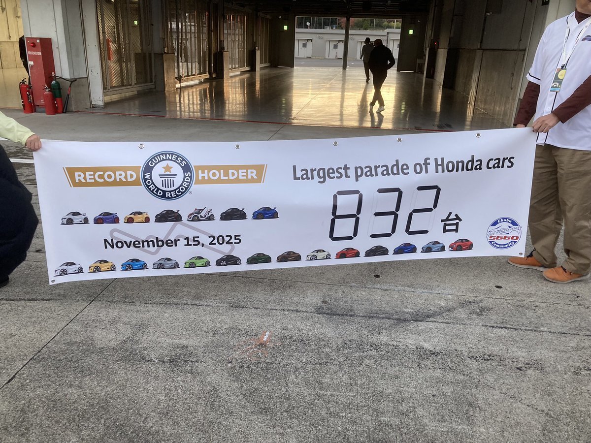 【ギネス世界記録™を更新】 11/15(土)、832台のS660が鈴鹿サーキットに集まりパレードランを行い、「最大のホンダ車パレード」ギネス世界記録™にチャレンジ! 圧巻の光景で見事に世界記録の更新が認定されました! #S660 #ギネス世界記録