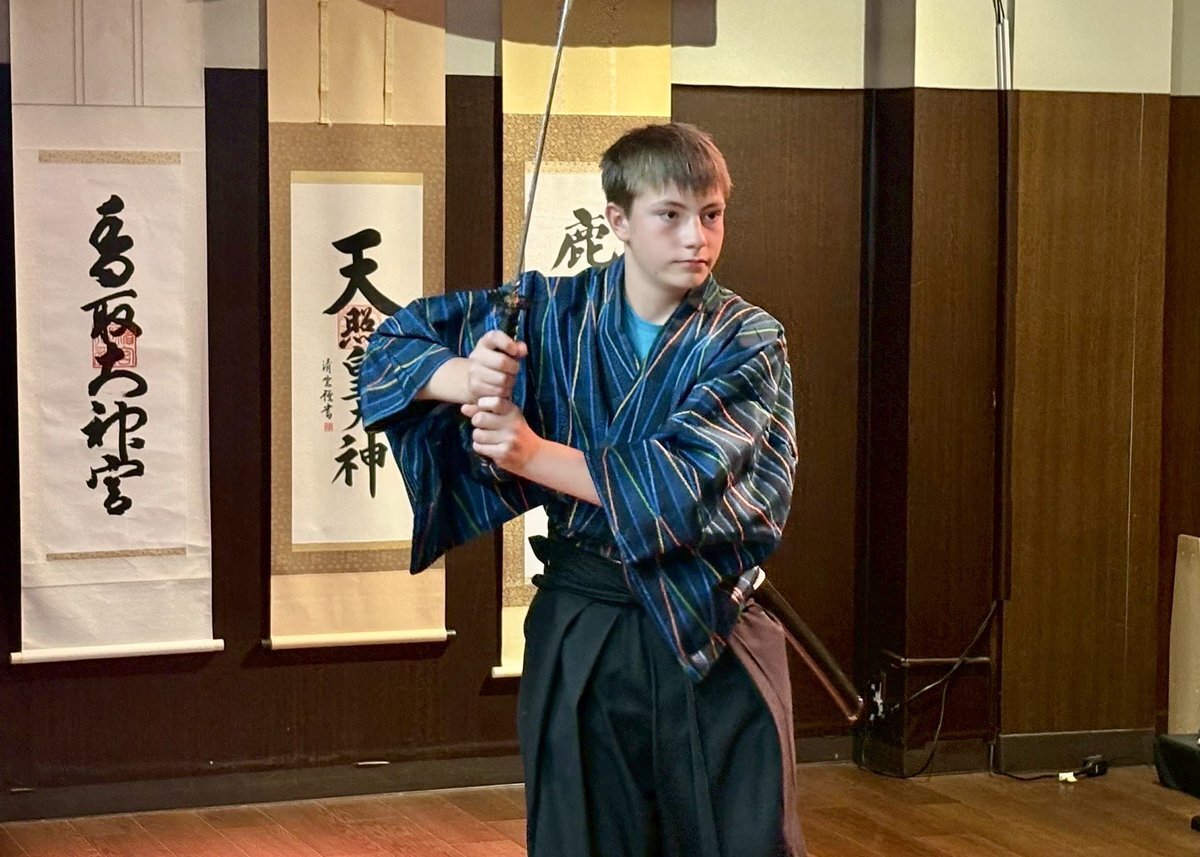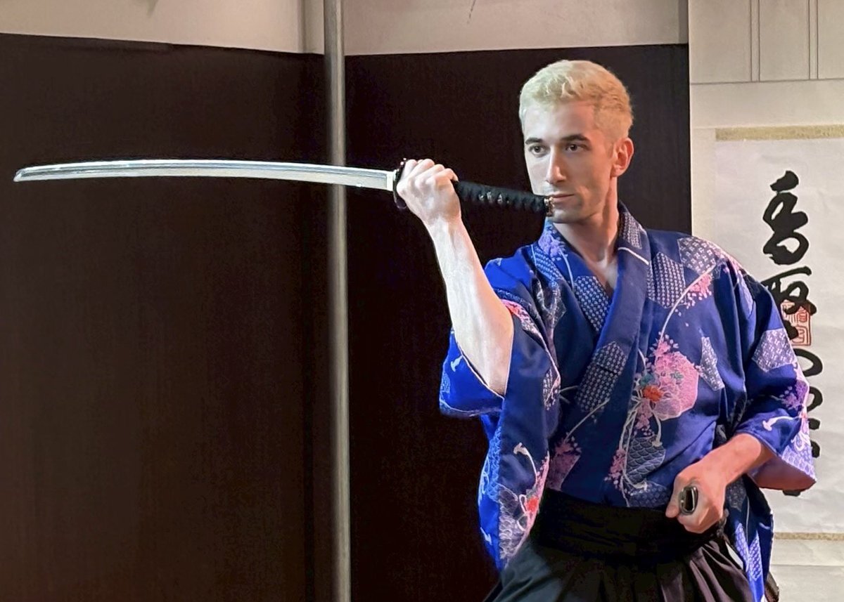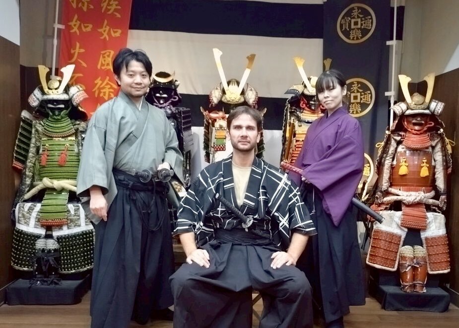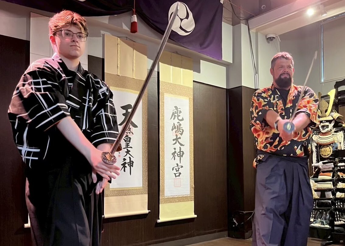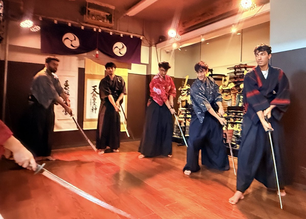 ✨本日のサムライ✨ アメリカからお越しのお客様に #サムライ体験 をお楽しみいただきました😊 真摯にお稽古をしパワフルな立ち回りが印象的でした😊 #相良元城 #三嶋亮太 #岩邊諒 #松下うみ #インバウンド #samuraiexperience #サムライシアター東京 pic.x.com/XunpjnMUPn