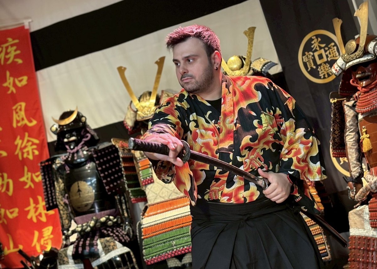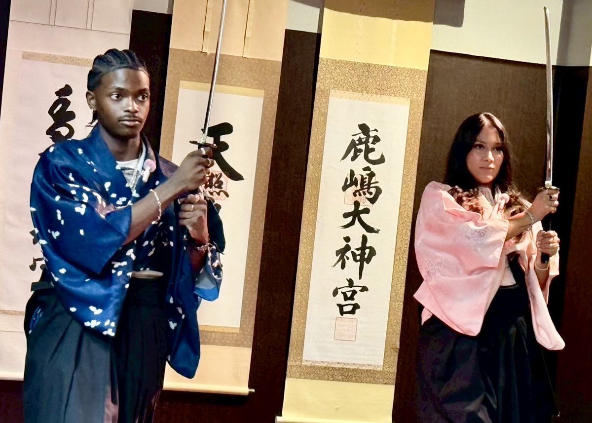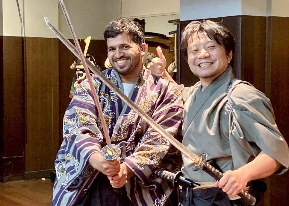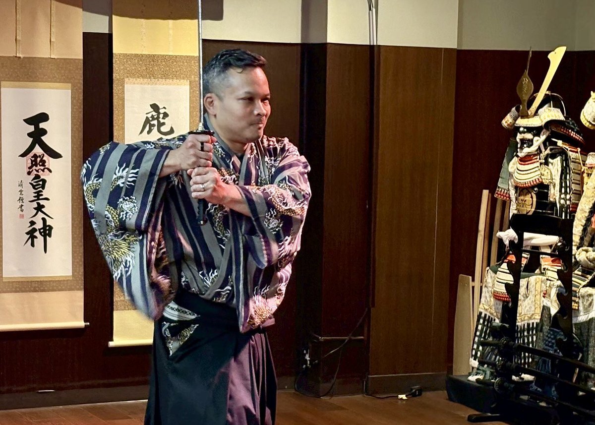 ✨本日のサムライ✨ アメリカからお越しのお客様に #サムライ体験 をお楽しみいただきました😊 真摯にお稽古をしパワフルな立ち回りが印象的でした😊 #相良元城 #三嶋亮太 #岩邊諒 #松下うみ #インバウンド #samuraiexperience #サムライシアター東京 pic.x.com/XunpjnMUPn