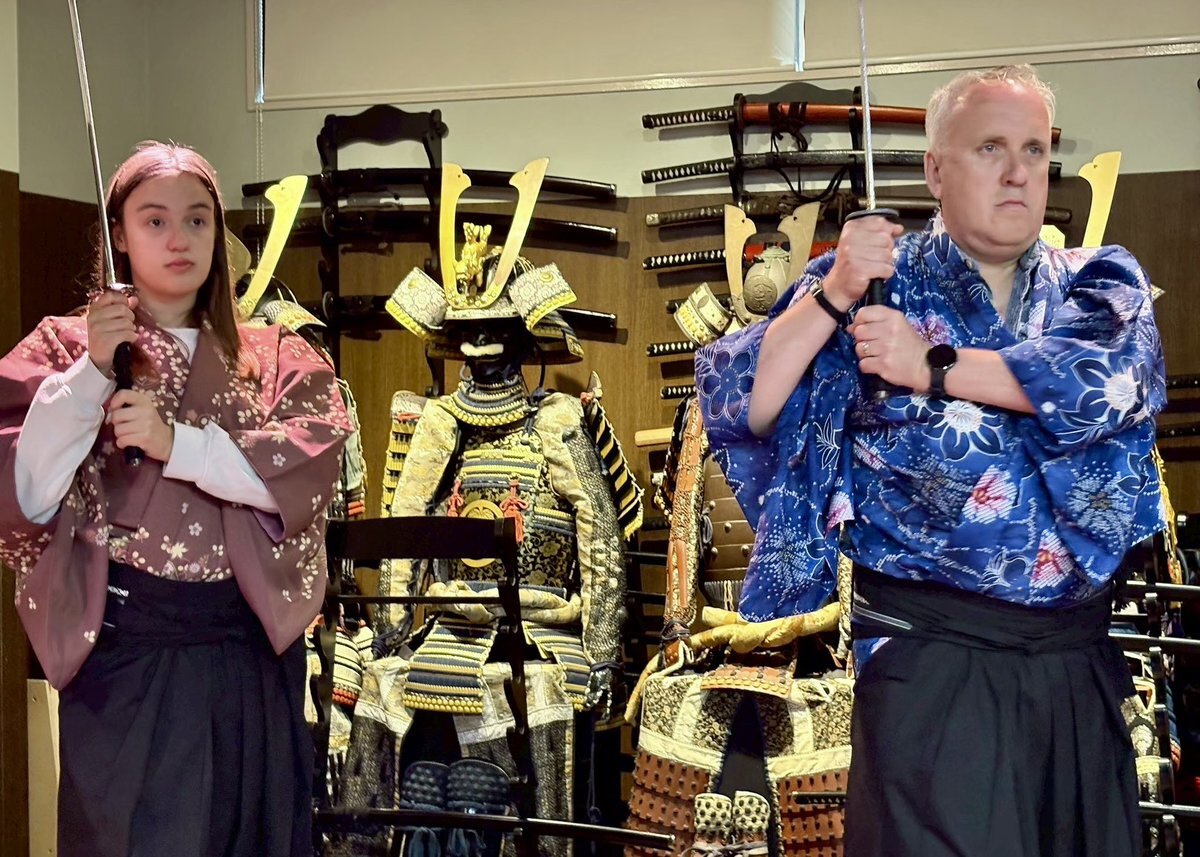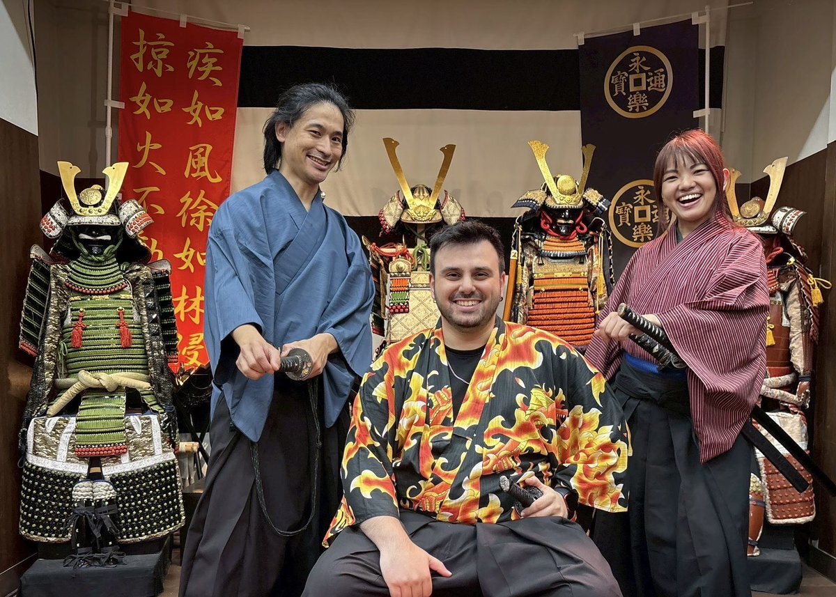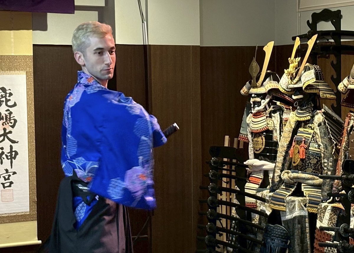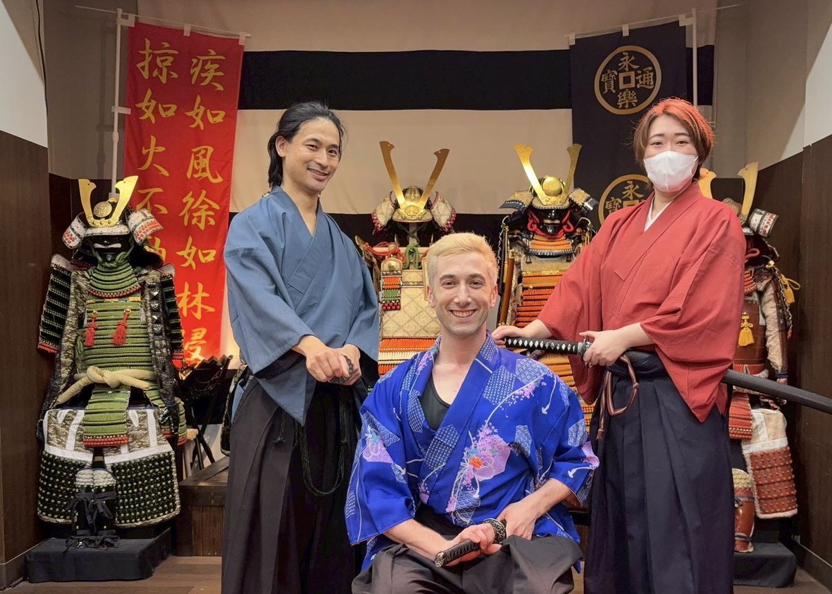 ✨本日のサムライ✨ オーストラリアからお越しのお客様に #サムライ体験 をお楽しみいただきました😊 丁寧な動きと勇ましさの中にも時折見せる笑顔が素敵でした😊 #相良元城 #三嶋亮太 #松下うみ #インバウンド #samuraiexperience #サムライシアター東京 pic.x.com/F1kPYPhuBU