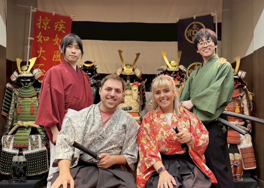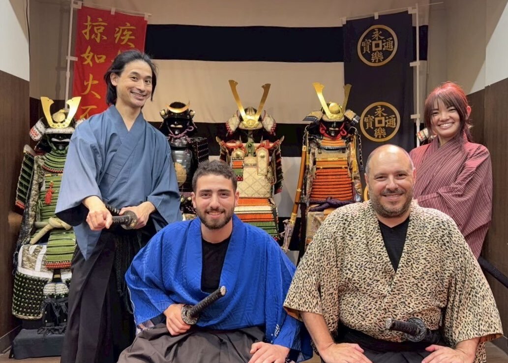 ✨本日のサムライ✨ サンフランシスコからお越しのお客様に #サムライ体験 をお楽しみいただきました😊 笑顔でサムライ体験をエンジョイされ楽しいお時間になりました😊 #相良元城 #三嶋亮太 #石原友佳 #インバウンド #samuraiexperience #サムライシアター東京 pic.x.com/pnE7fVHFDk